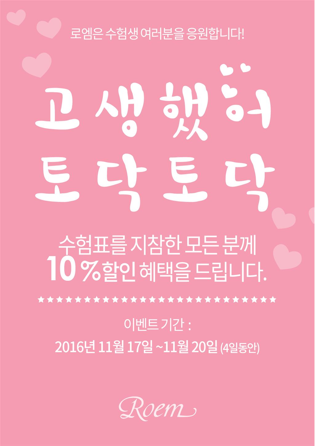 수험표 지참 시 패션 브랜드 10~20% 특별 할인 혜택