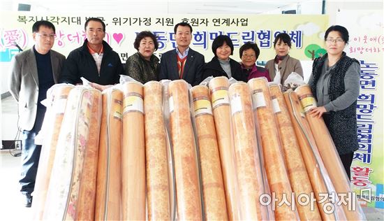 "에너지 취약가정 따뜻한 온기 선물" [아시아경제 노해섭 기자]보성군 노동면 희망드림협의체(공동위원장 김몽현, 박맹재)에서는 지난 15일 동절기대비 에너지 취약가정 15가구를 선정하여 보일러 점검, 난방매트 설치 등‘취약계층 주거환경개선사업’을 추진했다. 이번 사업은 노동면남녀의용소방대(남대장 조운태, 여대장 이용자)의 재능기부를 더하여 이웃에 사랑과 따뜻한 온기를 전하는 주택단열 자원봉사를 펼쳤다. 박맹재 민간위원장은“동절기에 생활고가 가중되는 관내 저소득가정이 따뜻한 겨울을 날 수 있도록 많은 분들이 함께 해주셔서 감사하다”고 전했다. 한편 노동면 희망드림협의체는 2016년 전남사회복지공동모금회 주관 5,800천원을 지원받아 복지사각지대 긴급구호비 지원 10가구 3,000천원, 영양간식지원 40가구 2,800천원, 무더위쉼터 방문 및 교육 등 다양한 활동을 통하여 노동면민의 맞춤형 복지체감도 향상에 노력하고 있다. 노해섭 기자 nogary@<ⓒ세계를 보는 창 경제를 보는 눈, 아시아경제(www.asiae.co.kr) 무단전재 배포금지>