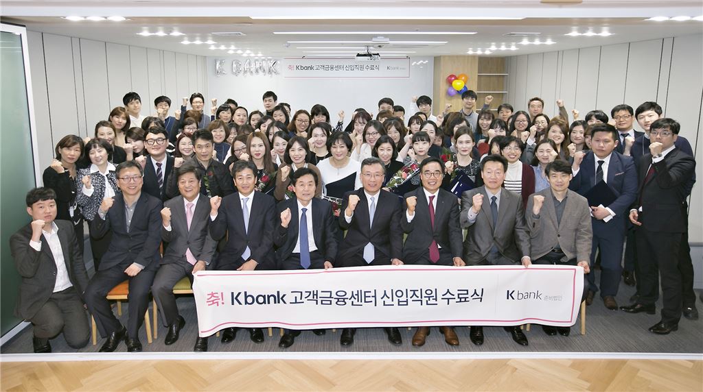 [아시아경제 박철응 기자]K뱅크 준비법인은 18일 서울 서대문구 충정타워에 위치한 고객금융센터에서 고객상담 전문가 교육과정 수료식을 했다고 밝혔다. 이날 행사에는 심성훈 대표이사를 비롯해 고객금융센터 직원 등 80여명이 함께 했다. 고객상담 전문가들은 지난 9월19일부터 2개월동안 은행의 업무이론 및 실무 교육 과정을 이수했다. 주요 교육 내용은 예·적금, 대출 등 대표 상품을 비롯한 은행 업무 전반이다. 조별 역할극을 통해 실전 상담 능력을 갖추기도 했다. 심 대표는 “고객금융센터는 고객과의 소통 최일선에서 24시간 365일 쉼 없이 혁신은행 이미지를 구축해나가는 케이뱅크의 핵심 채널”이라며 “향후 최고의 고객 서비스가 이뤄지도록 업무환경 혁신, 교육기회 제공 등 전폭적인 지원을 지속할 것”이라고 말했다.