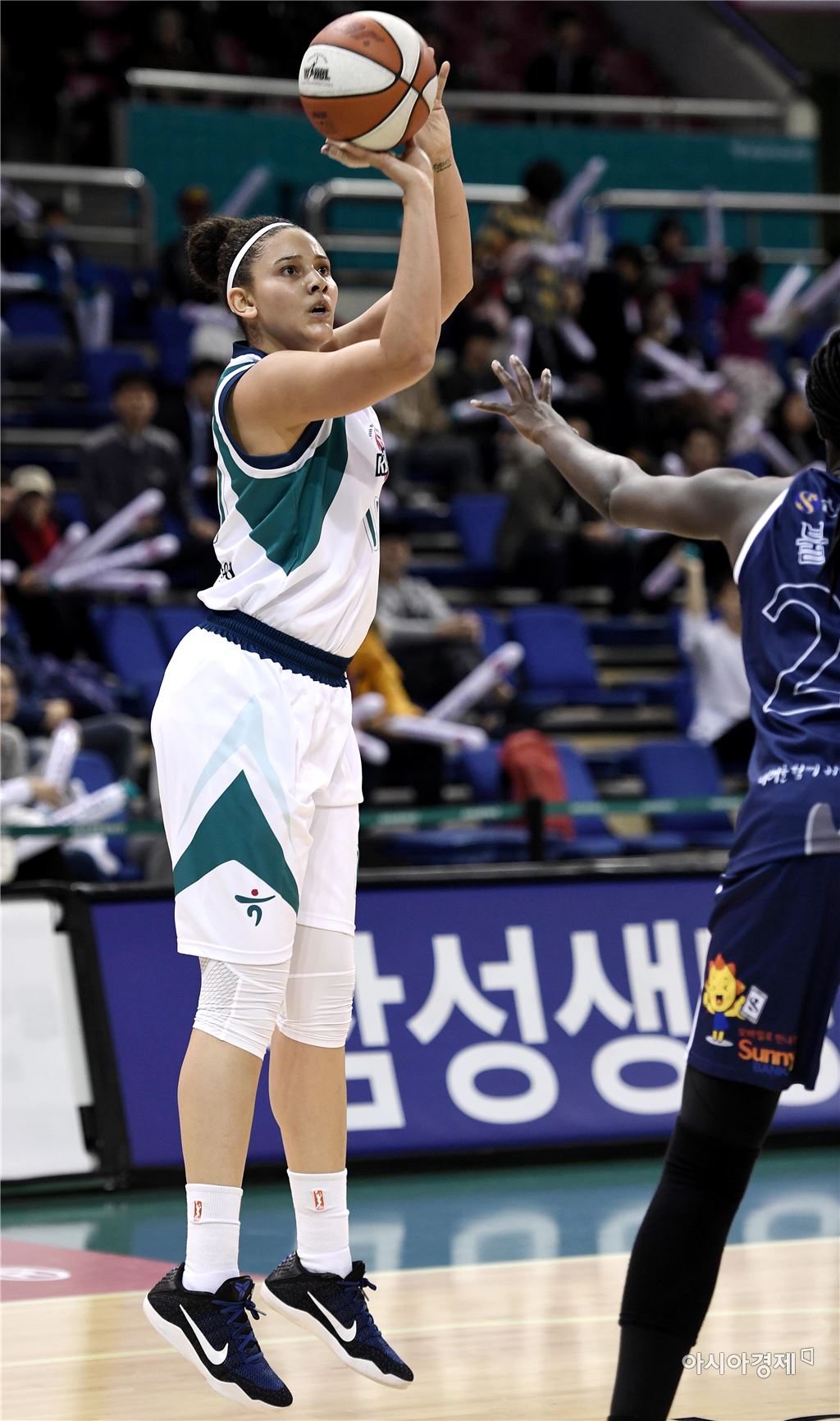 [부천=아시아경제 김현민 기자]여자프로농구 부천 KEB하나은행과 인천 신한은행의 2016-2017 정규리그 경기가 18일 부천체육관에서 열렸다. 하나은행 어천와가 상대 수비를 뚫고 슛하고 있다. 김현민 기자 kimhyun81@asiae.co.kr<ⓒ세계를 보는 창 경제를 보는 눈, 아시아경제(www.asiae.co.kr) 무단전재 배포금지>