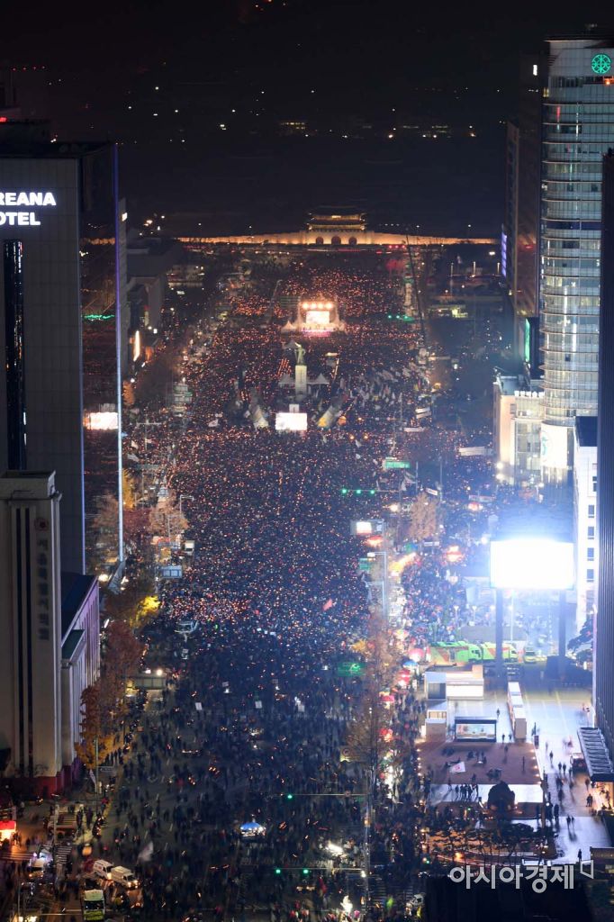 [아시아경제 ] 19일 오후 서울 광화문광장에서 '최순실 게이트' 진상규명과 박근혜 대통령 퇴진을 촉구하는 4차 '2016 민중 총궐기 대회'에 참석한 시민들이 촛불을 들고 있다.<사진공동취재단><ⓒ세계를 보는 창 경제를 보는 눈, 아시아경제(www.asiae.co.kr) 무단전재 배포금지>