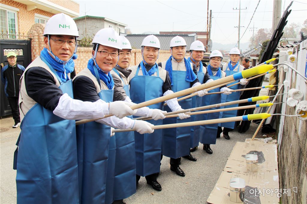 "담양군 관내 노후 농가 수리, 생활용품 지원 등"[아시아경제 노해섭 기자]농협 전남지역본부(본부장 강남경)는 지난 18일 농협중앙회(회장 김병원) 농가희망 봉사단(단장 김형신 안전총무부장)봉사단원 50여명과함께 전남 담양군 담양읍 이영두씨 가정을 포함한 담양군 관내 3개 농가를대상으로 사랑의 집 고치기 봉사활동을 실시하고 마을회관에는 가전제품과 생활용품 등을 기증했다. 이 날 봉사활동과 함께 실시된 2016년 전남지역 농가희망봉사단발대식에는 김형신 농협중앙회 안전총무부장, 나병만 농협중앙회 전남지역부본부장, 홍성일 담양군부군수, 이규현 담양군의회부의장 등이 참석하여 봉사단원을 격려하고 노후주택의 지붕개량작업 등 봉사활동에도 동참했다.농협 사랑의 집고치기 농가희망봉사단은 건축, 전기, 기계 등 전문기술을 보유한 농협 직원들이 2005년 자발적으로 결성하여 매월 전국을 순회하며, 지금까지 총 인원 6,612여명이, 538가구를 대상으로 노후 주택수리, 보일러 및 급수배관 교체, 전기배선·전등교체 등 무료 봉사활동을 실시하여 고령 농업인, 다문화 가정, 소년 소녀 가정에 새로운 보금자리를 마련해주었다.왼쪽에서 2번째 박이환 담양농협 조합장 3번째 김형신 안전총무부장, 4번째 김영석 담양군지부장, 맨 오른쪽 나병만 부장이 페인트를 칠하고있다.<br />