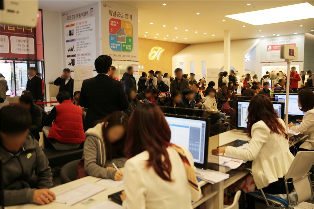 지난 18일 문을 연 현대건설의 '힐스테이트 호매실' 견본주택을 찾은 수요자들이 분양 상담을 받고 있다.(제공: 현대건설)