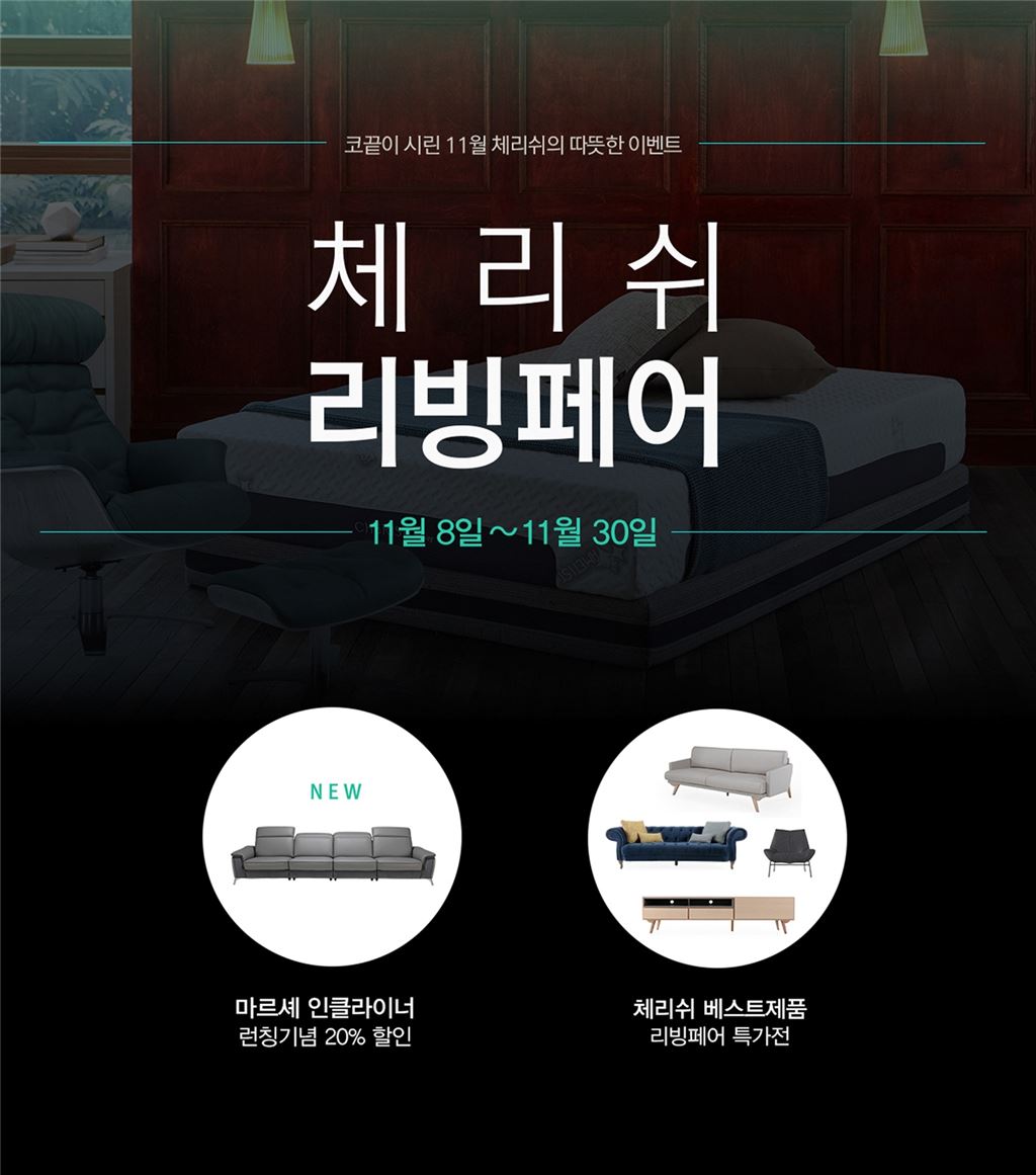 [아시아경제 임온유 기자] 토탈 리빙 업체 체리쉬가 최대 30% 할인을 제공하는 ‘리빙페어’ 이벤트를 진행한다고 21일 밝혔다. 행사는 오는 30일까지 진행된다. 올 한해 고객들에게 인기를 끌었던 체리쉬의 상품들 중 소파를 중심으로 기획한 이벤트다. 무드 코너형 소파와 도브 카우치 소파, 라포레 브리즈 3인 소파 등 구매 시 15%~20% 할인이 적용된다. 또한 베스트 소파 3종과 함께 활용하기 좋은 거실장과 소파테이블을 구매할 시 20%~25% 추가 할인을 받을 수 있다. 특히 체리쉬만의 고급스럽고 모던한 감성이 담긴 밀라노 홈 트렌드 컨셉 가구 ‘MHC(엠에이치씨)’의 라인별 소파 제품을 할인된 가격으로 만나볼 수 있는 유일한 행사로, 단품 및 세트 구매시 20%~30% 할인된 가격으로 구매 가능하다. 게다가 체리쉬 매장과 공식 홈페이지를 통해 사전 예약한 고객들에겐 10% 할인이 추가로 제공된다. 이 밖에도 금액별 사은품이 선물로 증정되는 이벤트도 함께 진행된다. 500만원 이상 구매 고객에겐 앨리스2 카페트가, 700만원이상 고객에겐 아치무드등이, 1000만원 이상 구매고객에겐 오리진 회전형 소파테이블 혹은 미소 거실장이 증정된다. 체리쉬 관계자는 “본격적인 겨울 시작 전에 집안 분위기를 바꾸고 싶거나 겨울 웨딩을 앞두고 있는 예비 신혼부부들을 다양한 혜택을 주기 위해 기획된 이벤트”로 “많은 고객들이 체리쉬의 베스트제품을 보다 더 합리적인 가격으로 만나볼 수 있는 이번 기회를 놓치지 않길 바란다”고 말했다. 임온유 기자 ioy@asiae.co.kr<ⓒ세계를 보는 창 경제를 보는 눈, 아시아경제(www.asiae.co.kr) 무단전재 배포금지>