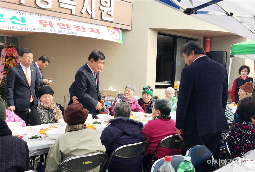 [아시아경제 노해섭 기자]노인요양원이 지역사회 필요한 시설로 정착되고 있다.지난 16일 의신면 칠전마을에 위치한 진도군노인요양원은 현관 앞에서 입소 어르신과 마을 어르신 및 보호자 약 150명을 모시고 어르신위안잔치를 의미 있게 개최하여 주민들로부터 잔잔한 감동과 칭찬을 받고 있다.이 행사는 노인요양원에 입소 어르신들에게 마을 어르신과 보호자 간 서로 대화하고 소통하면서 지역사회 공동체 일원으로 인식하고 참여하는 기회를 제공하기 위하여 진도군노인요양원이 2012년 이후 세 번째 노인요양원의 순수한 자체부담으로 개최했다.이날 입소 어르신들은 집안의 안부는 물론 마을 변동 상황에 대하여 이것저것 물어보느라 분주할 정도로 궁금증을 해소하였고 마을 어르신들은 요양원 어르신의 건강상태와 그동안 안부를 살피느라 화기애애한 분위기 속에서 진행되었다.이 자리에 참석한 칠전마을 노인회장 박춘수(80) 씨는 “마을에 계시는 어르신들은 입소 어르신과 대화하면서 요양원에 입소하기 위해 사전 답사온 것처럼 어르신들의 관심이 대단하였다. 앞으로 위안잔치가 자주 있으면 좋겠다”고 말했다.노인요양원은 이제 입소 어르신만 생활하고 보호자 등 관계자만이 왕래하고 소통하는 노인복지시설이 아니라, 농어촌 독거노인의 어려움까지 해결하고 도움을 주는 필요한 노인복지시설로 거듭나기 위하여 지역주민에게 개방하고 소통해야 한다는 점에서 오늘의 위안잔치는 의미 있는 행사라고 참석자들은 평가했다.진도군노인요양원은 노인요양원과 지역사회와의 교류 및 참여와 공동체 조성을 위하여 정기적인 어르신 위안잔치 등 만남의 기회를 마련하여 농어촌 노인복지에 기여할 수 있는 역할을 하도록 단계별 계획을 확대 추진할 계획이라고 한다.위안잔치에는 진도군수, 군의원, 노인복지 관련 기관단체장 등이 참석하여 관심을 보였다.이동진 진도군수는 이 자리에서“농어촌에서 힘들게 생활하고 계시는 독거노인은 노인요양원과 연계하는 방안도 하나라고 생각할 때 진도군노인요양원이 노인위안잔치를 개최하는 것은 바람직하다”고 격려했다.위안잔치는 진도문화원 경노당 예술팀(팀장 김실)이 출연하여 수준 높은 공연을 하여 주었고, 대중가요는 구루터기 봉사단에서 가수가 출연하여 참석하신 어르신들을 즐겁고 흥겹게 하여 처음부터 끝까지 화기애애한 분위기속에서 진행되었다. 앞으로 진도군노인요양원은 위안잔치 현장에서 입소 어르신과 노인복지관련 임직원과 자매결연, 재능·예술봉사단체 관계자와 자매결연 그리고 요양원 주관으로 관내 역사문화유적지 탐방, 지역내 경노위안잔치 참석 등 지역주민과 연계사업을 지속적으로 추진할 것이라고 밝혔다.노해섭 기자 nogary@<ⓒ세계를 보는 창 경제를 보는 눈, 아시아경제(www.asiae.co.kr) 무단전재 배포금지>