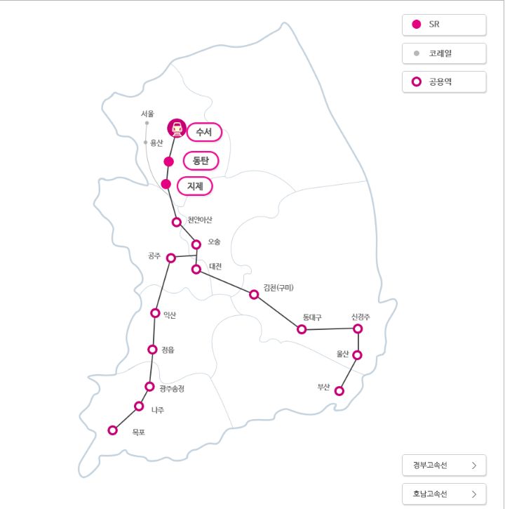 SRT 운행구간/사진=SR 홈페이지