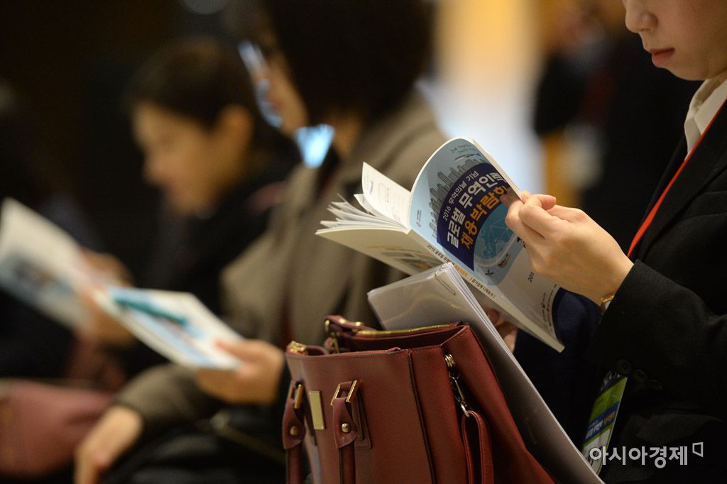 [아시아경제 문호남 인턴기자] 22일 서울 삼성동 코엑스에서 한국무역협회 주최로 열린 '글로벌 무역인력 채용박람회'를 찾은 구직자들이 안내 책자를 살펴보고 있다. 제53회 무역의 날(12월 5일)을 앞두고 열린 이번 행사는 수출 중소·중견기업, 해외기업 등 온·오프라인 200개 회사가 참여해 청년들의 취업 기회를 제공했다. 문호남 인턴기자 munonam@asiae.co.kr<ⓒ세계를 보는 창 경제를 보는 눈, 아시아경제(www.asiae.co.kr) 무단전재 배포금지>