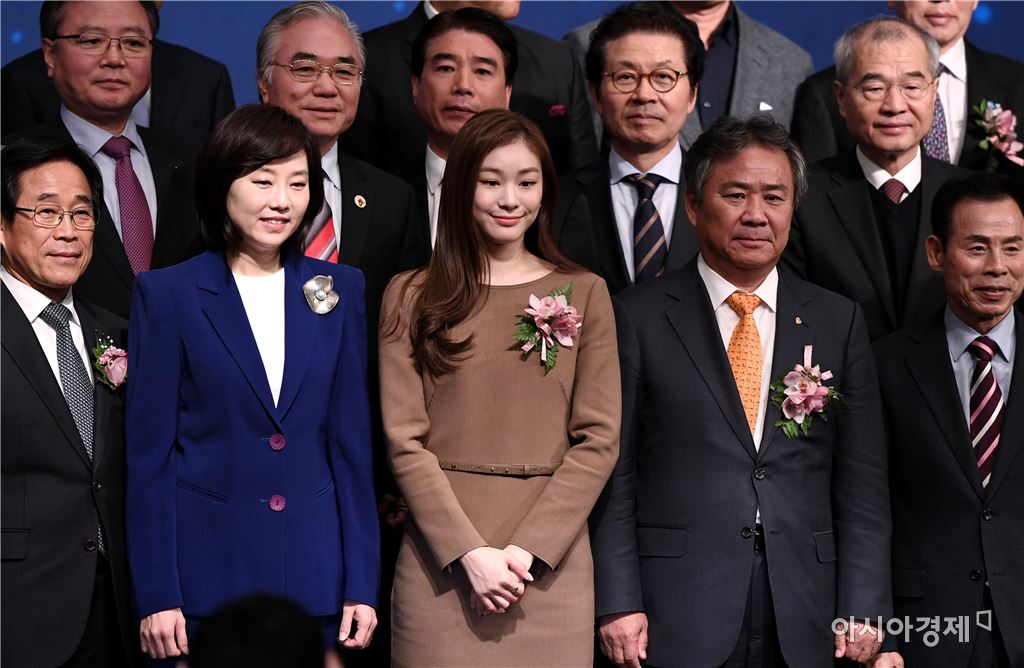 [아시아경제 김현민 기자]2016 스포츠영웅에 선정된 김연아가 23일 서울 송파구 올림픽파크텔에서 열린 명예의 전당 헌액식에서 조윤선 문체부 장관을 비롯한 내빈들과 기념촬영을 하고 있다. 대한체육회는 지난 10월 5일, 스포츠영웅 선정위원회를 열고 2010년 밴쿠버동계올림픽과 2014년 소치동계올림픽에서 금메달과 은메달을 획득한 김연아를 2016년도 스포츠영웅으로 선정했다.김현민 기자 kimhyun81@asiae.co.kr<ⓒ세계를 보는 창 경제를 보는 눈, 아시아경제(www.asiae.co.kr) 무단전재 배포금지>