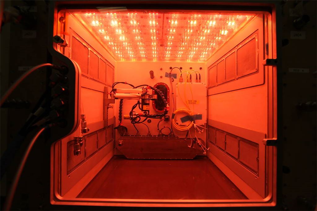 ▲나사가 내년에 ISS로 날아갈 '진화된 식물 재배시스템'을 실험하고 있다.[사진제공=NASA]