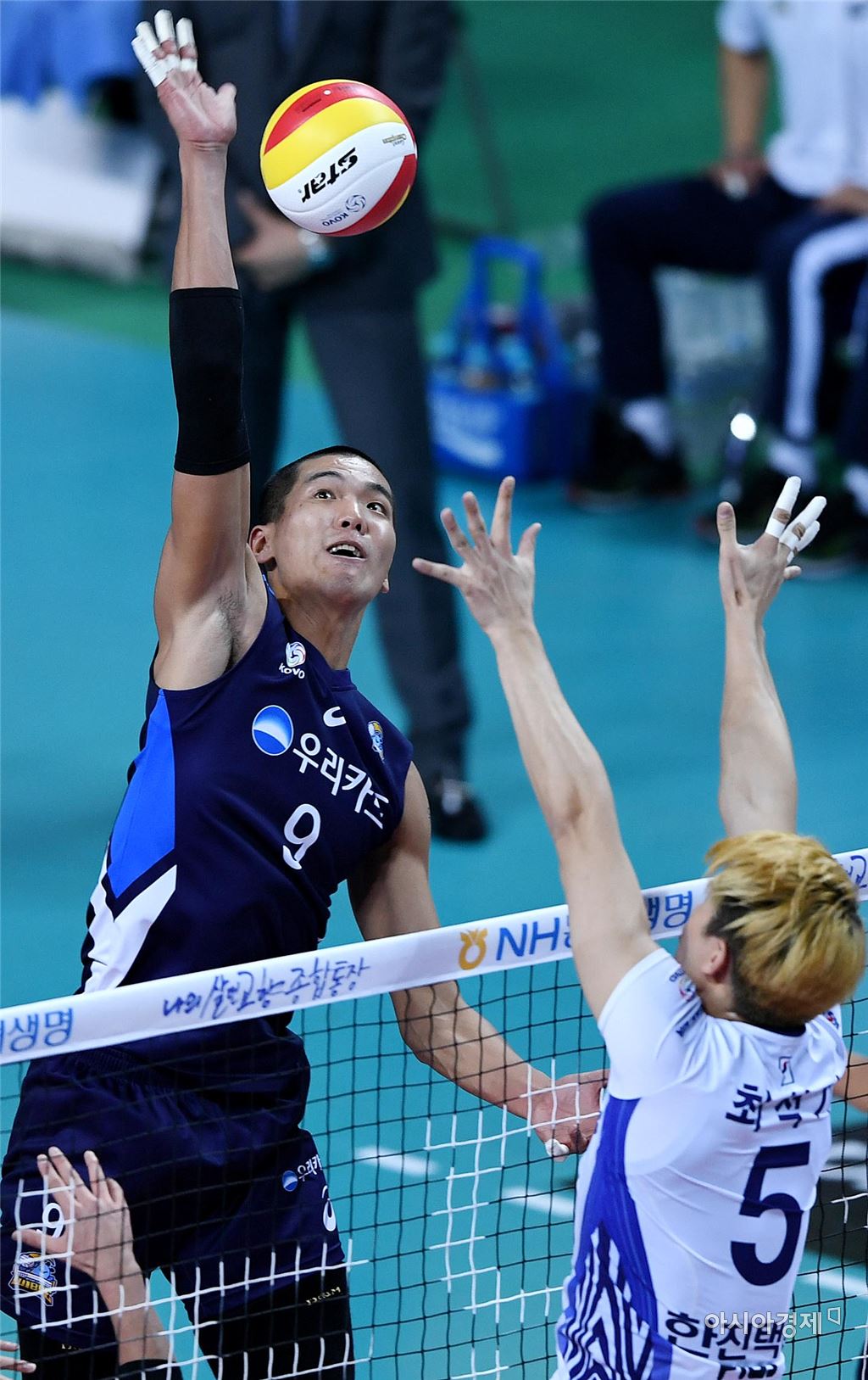 [아시아경제 김현민 기자]프로배구 우리카드와 대한항공의 2016-2017 정규리그 경기가 24일 서울 장충체육관에서 열렸다. 우리카드 김은섭이 상대 블로킹을 뚫고 공격하고 있다. 김현민 기자 kimhyun81@asiae.co.kr<ⓒ세계를 보는 창 경제를 보는 눈, 아시아경제(www.asiae.co.kr) 무단전재 배포금지>김현민 기자 kimhyun81@asiae.co.kr<ⓒ아시아 대표 석간 '아시아경제' (www.newsva.co.kr) 무단전재 배포금지>