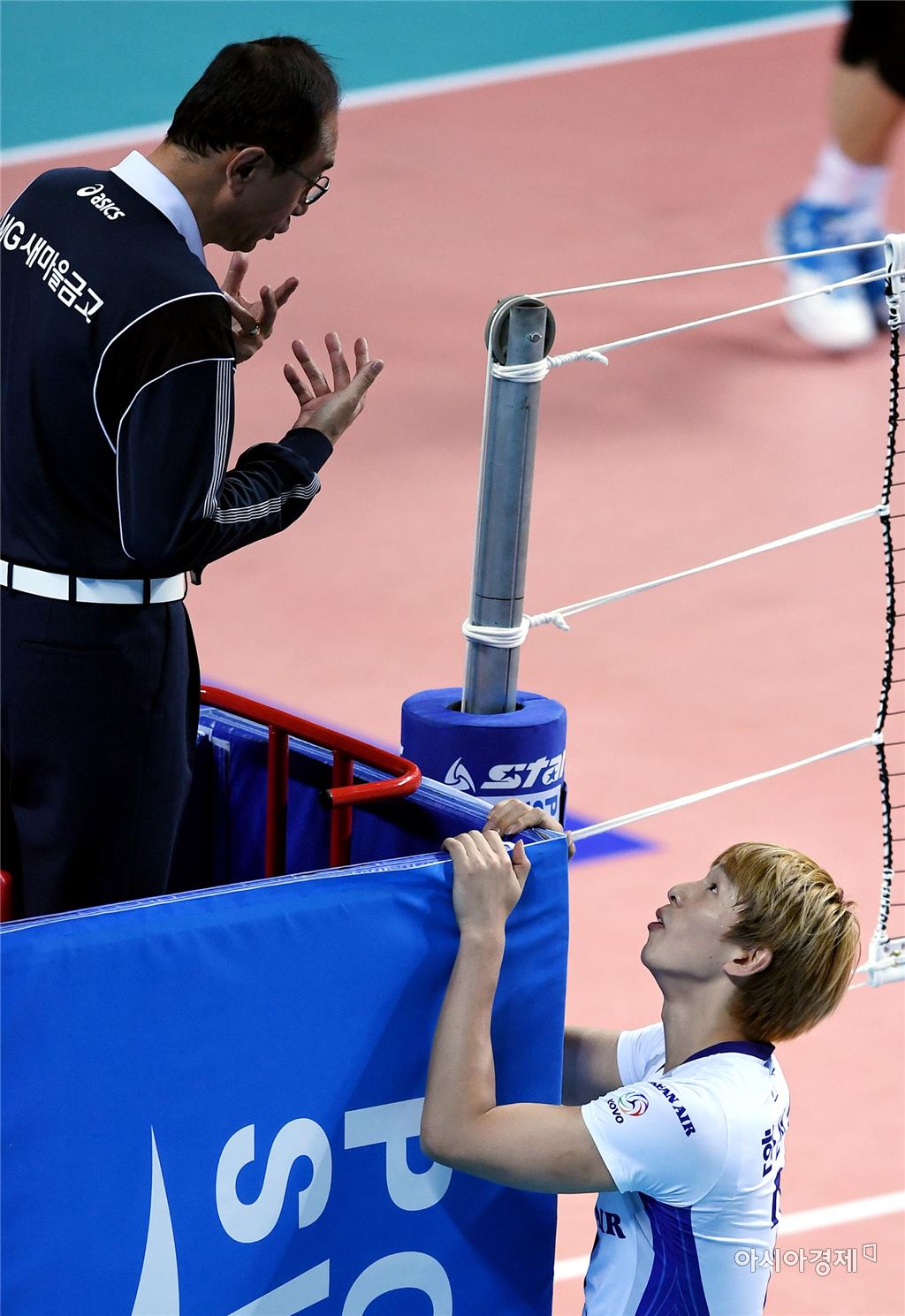 [아시아경제 김현민 기자]프로배구 우리카드와 대한항공의 2016-2017 정규리그 경기가 24일 서울 장충체육관에서 열렸다. 대한항공 한선수가 심판에 어필하고 있다. 김현민 기자 kimhyun81@asiae.co.kr<ⓒ세계를 보는 창 경제를 보는 눈, 아시아경제(www.asiae.co.kr) 무단전재 배포금지>김현민 기자 kimhyun81@asiae.co.kr<ⓒ아시아 대표 석간 '아시아경제' (www.newsva.co.kr) 무단전재 배포금지>