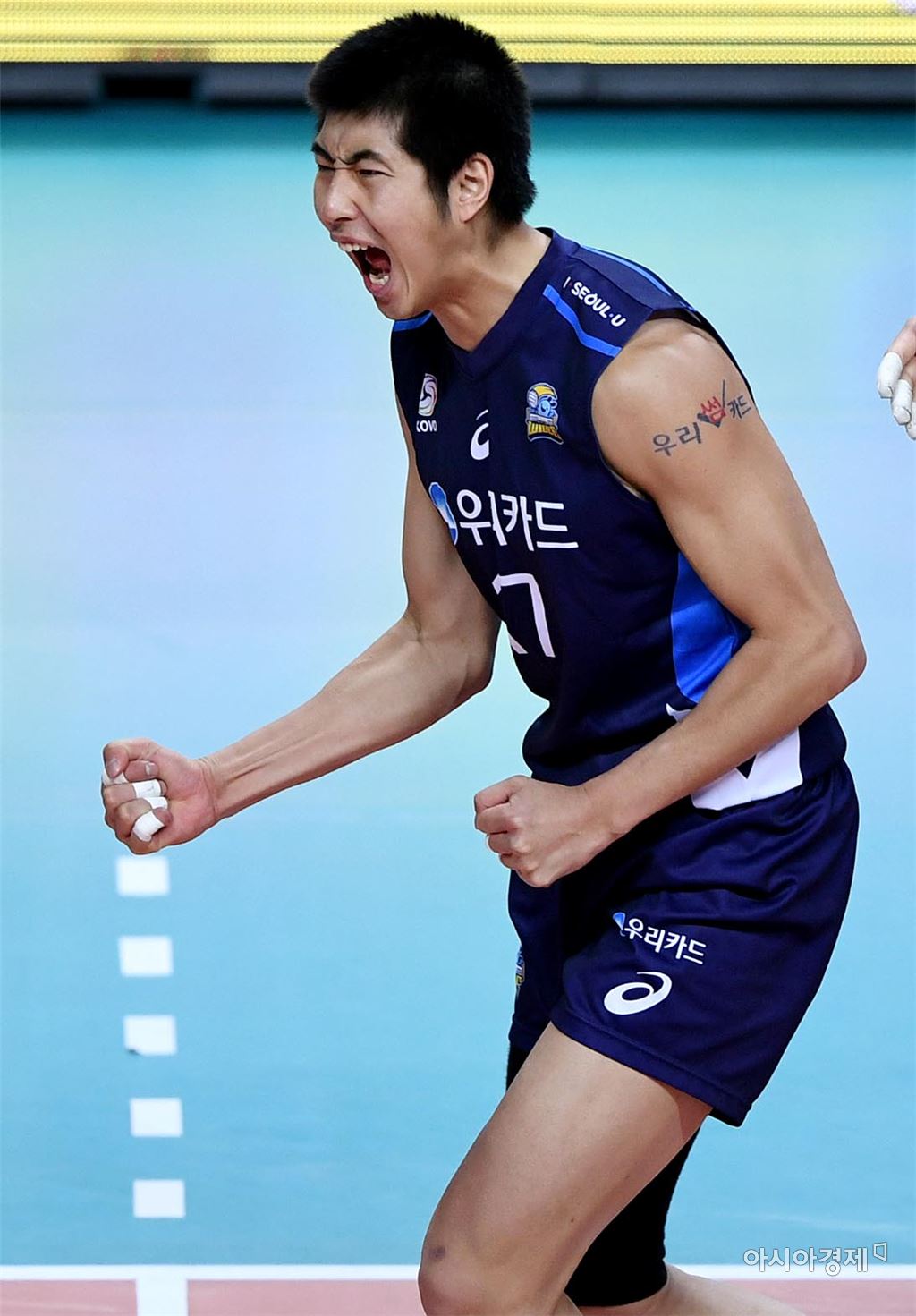 [아시아경제 김현민 기자]프로배구 우리카드와 대한항공의 2016-2017 정규리그 경기가 24일 서울 장충체육관에서 열렸다. 우리카드 박상하가 득점한 뒤 환호하고 있다. 김현민 기자 kimhyun81@asiae.co.kr<ⓒ세계를 보는 창 경제를 보는 눈, 아시아경제(www.asiae.co.kr) 무단전재 배포금지>김현민 기자 kimhyun81@asiae.co.kr<ⓒ아시아 대표 석간 '아시아경제' (www.newsva.co.kr) 무단전재 배포금지>