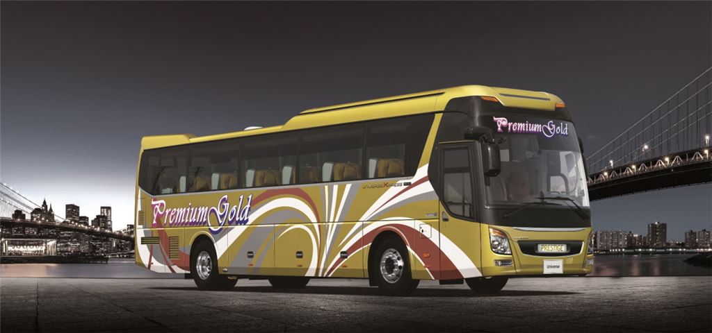 현대차가 25일 개통한 프리미엄 고속버스 '유니버스 프레스티지' 외관.