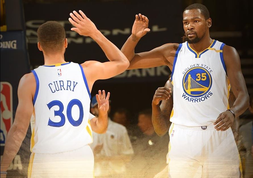 케빈 듀란트(오른쪽)와 스테픈 커리 [사진= 골든스테이트 워리어스 페이스북]