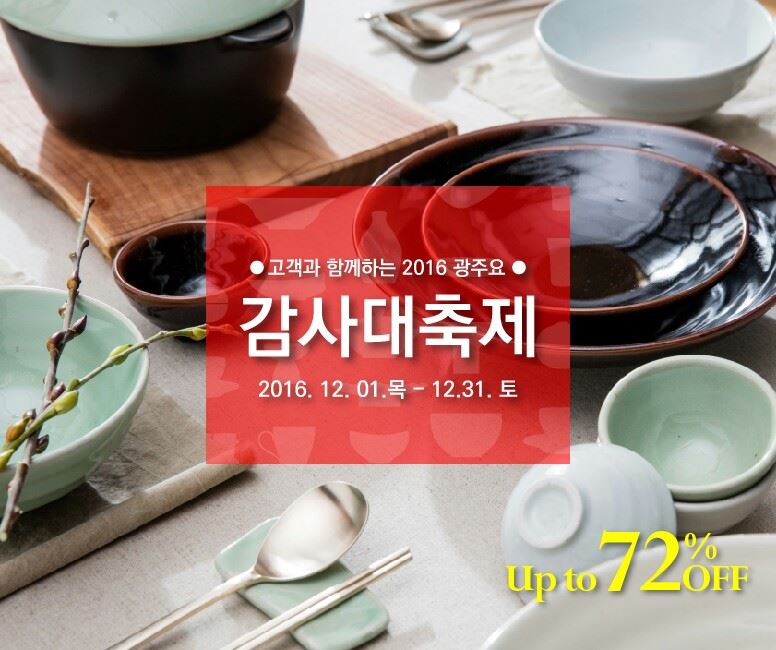 [아시아경제 임온유 기자] 광주요가 내달 1일부터 31일까지 한 달간 ‘고객과 함께하는 2016 광주요 감사 대축제’를 실시한다고 30일 밝혔다.광주요 직영점 4곳과 자사 온라인쇼핑몰을 포함한 온라인몰 8곳, 백화점 14개점 등 광주요 전 판매채널이 동시에 실시하는 2016년 최대 규모 행사다.광주요 이천 본사 소재 오름가마의 문화재 등록, 도자업계 최초 소비자중심경영 인증 획득, 신제품 한결시리즈, 미자시리즈 등 다양한 신제품이 출시되고 광주요그룹 한식당 ‘가온’, ‘비채나’의 미쉐린 스타 획득 등 올해 특히 경사가 많았던 만큼 광주요는 고객의 성원에 보답하고자 이번 행사를 마련했다. 광주요 고객들은 최대 72%까지 할인된 가격으로 인기 제품을 만나볼 수 있다.2017년 새해를 맞이하며 광주요가 최저 9천원부터 가격대별로 엄선한 GIFT 30선과 더불어 미쉐린 레스토랑 식기, 장작가마 소성 ‘등요’ 제품, 고객 참여 제품 등 다양한 기획 상품전이 마련된다. 또 3일과 4일 양일간 액세서리, 캔들, 우드소품, 꽃, 수제 식음료 등 10개의 업체가 함께 꾸린 ‘광주요 이천센터점 깜짝 바자회’ 등 축제의 이름에 맞는 풍성한 볼거리도 함께 제공된다.특히 광주요를 카카오톡 플러스친구로 추가하고 이번 축제기간 직영점에서 제품을 구입하는 고객 전원에게는 현장에서 5% 추가 할인 혜택이 제공되며 구매 금액에 따라 사은품 증정 및 추가 할인 이벤트도 함께 진행된다.광주요 관계자는 “지난 1년동안 광주요를 응원해주신 많은 고객들에게 감사하는 마음을 꼭 전하고 싶어 이번 연말 행사를 기획하게 됐다”며 “작년까지는 연 2회 진행한 도자축제가 올해부터는 1회만 진행되어 아쉬워하는 고객 분들이 많았는데 이번 행사에 함께 하시고 한 해를 기분 좋게 마무리하셨으면 좋겠다”고 말했다.임온유 기자 ioy@asiae.co.kr<ⓒ세계를 보는 창 경제를 보는 눈, 아시아경제(www.asiae.co.kr) 무단전재 배포금지>