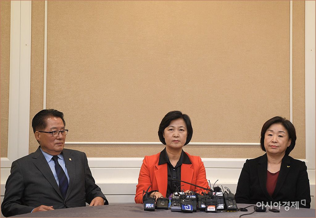 [아시아경제 윤동주 기자] 추미애 더불어민주당 대표, 박지원 국민의당 대표, 심상정 정의당 대표가 30일 국회에서 박근혜 대통령 탄핵소추안 논의를 하기 위해 만나고 있다.윤동주 기자 doso7@asiae.co.kr<ⓒ세계를 보는 창 경제를 보는 눈, 아시아경제(www.asiae.co.kr) 무단전재 배포금지>