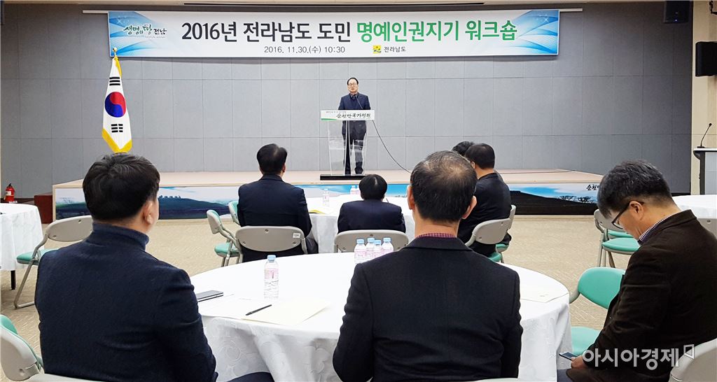 "30일 순천서 명예인권지기단 역량 강화 워크숍" [아시아경제 노해섭 기자]전라남도는 30일 순천 국제습지센터에서 도민 명예인권지기, 시군 담당 공무원 등 80여 명이 참석한 가운데 ‘도민 명예인권지기단 워크숍’을 개최했다.도민 명예인권지기단은 지난 2015년 12월 시군 추천으로 도민 인권 침해 및 차별행위 예방을 위해 시군별 3~5명씩 101명으로 구성됐다. 생활 현장에서 발생하는 인권침해 사례 신고와 각종 인권시책에 대한 의견 제시 등 활동을 한다.이번 워크숍은 인권침해 및 차별사항 모니터링을 효과적으로 수행하는 등 도민인권지킴이단의 역량 강화를 위해 개최됐다.워크숍은 전라남도 인권옴부즈맨 제도 안내, 인권 침해 사례 안내 및 예방교육, 인권 감수성 향상 교육, 인권영화 관람 순으로 진행됐다.윤승중 전라남도 자치행정국장은 “행정기관의 노력만으로 인권 침해를 예방하는데는 한계가 있는 만큼 명예인권지기단의 관심과 활동이 매우 중요하다”며 “앞으로 인권 가치의 사회적 확산과 인권 존중 문화 형성에 도민 명예인권지기단이 앞장서 줄 것”을 당부했다.전라남도는 앞으로 명예인권지기단의 적극적인 활동을 위해 정기적으로 역량 강화 워크숍을 개최하고 활동 우수자를 표창하는 등 자긍심과 사명감을 높일 수 있는 방안을 마련해 지원할 방침이다.노해섭 기자 nogary@<ⓒ세계를 보는 창 경제를 보는 눈, 아시아경제(www.asiae.co.kr) 무단전재 배포금지>