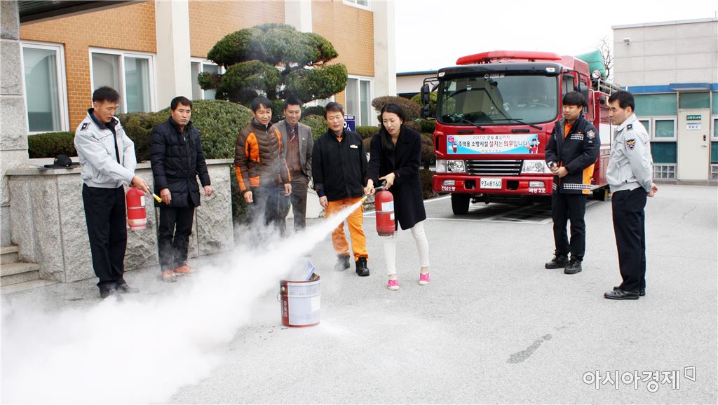 [아시아경제 노해섭 기자]곡성경찰서(서장 오상택) 는 30일 곡성 119안전센터와 합동으로 경찰서 내 화재발생시 신속한 화재진압과 인명구조 등 화재대응능력 향상을 위한 합동 소방훈련을 실시했다. 이번 훈련은 화재발생시 직원들의 안전한 대피유도와 소화기 사용 등 화재진압 방법 등을 습득하기 위해 마련됐다. 오상택 경찰서장은 “이번 훈련을 계기로 만일의 사태에 대비해 청사 방호 체제를 강화하고 신속한 인명구조 및 응급구호를 할 수 있는 계기로 삼겠다”고 말했다. 노해섭 기자 nogary@<ⓒ세계를 보는 창 경제를 보는 눈, 아시아경제(www.asiae.co.kr) 무단전재 배포금지>