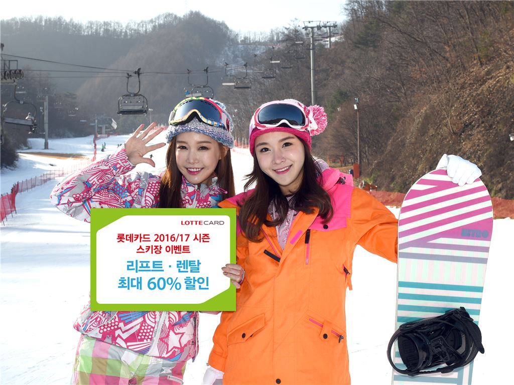 [아시아경제 정현진 기자] 롯데카드가 겨울시즌을 맞아 '롯데카드 2016/17 시즌 스키장 이벤트'를 실시한다고 2일 밝혔다. 2016~2017년 겨울 스키시즌 동안 전국 유명스키장에서 리프트·렌탈·부대시설 등을 롯데카드로 결제하면 전월 실적에 관계없이 본인포함 4인까지 최대 60% 현장 할인을 받을 수 있다. 오크밸리, 비발디파크를 시작으로 용평리조트, 휘닉스파크, 지산리조트, 알펜시아, 엘리시안 강촌 등 7개 주요 스키장에서 할인서비스를 제공한다. 먼저 오크밸리에서는 리프트 25~60%, 렌탈 35%~50%, 일반강습 30%, 눈썰매 30% 할인 혜택을 제공하며, 매주 수요일에는 심야 혹은 야간 리프트 및 렌탈을 1만원에 이용할 수 있다. 비발디파크에서는 리프트 및 렌탈 30%, 강습 10~20% 할인을 해주며, 오션월드 30%, 아쿠아월드 성수기·주말 20%(비수기·주중 30%) 할인해준다.용평리조트에서는 리프트 및 렌탈, 곤돌라를 30~40% 할인해 주며, 매주 수요일 '롯데카드 데이'에는 리프트 심야권을 50% 할인해준다. 부대시설인 호텔사우나&스파, 피크아일랜드에서는 40% 할인 받을 수 있다. 휘닉스파크에서는 리프트 및 렌탈 25~35%, 블루캐니언 20~30% 할인해주며, 매주 수요일에는 리프트 및 렌탈 40~50%. 블루캐니언 50% 할인 받을 수 있다. 또한, 지산리조트, 알펜시아, 엘리시안 강촌 등에서도 리프트·렌탈·부대시설 이용 시 25~50% 할인 혜택을 받을 수 있다.정현진 기자 jhj48@asiae.co.kr<ⓒ세계를 보는 창 경제를 보는 눈, 아시아경제(www.asiae.co.kr) 무단전재 배포금지>정현진 기자 jhj48@asiae.co.kr<ⓒ아시아 대표 석간 '아시아경제' (www.newsva.co.kr) 무단전재 배포금지>