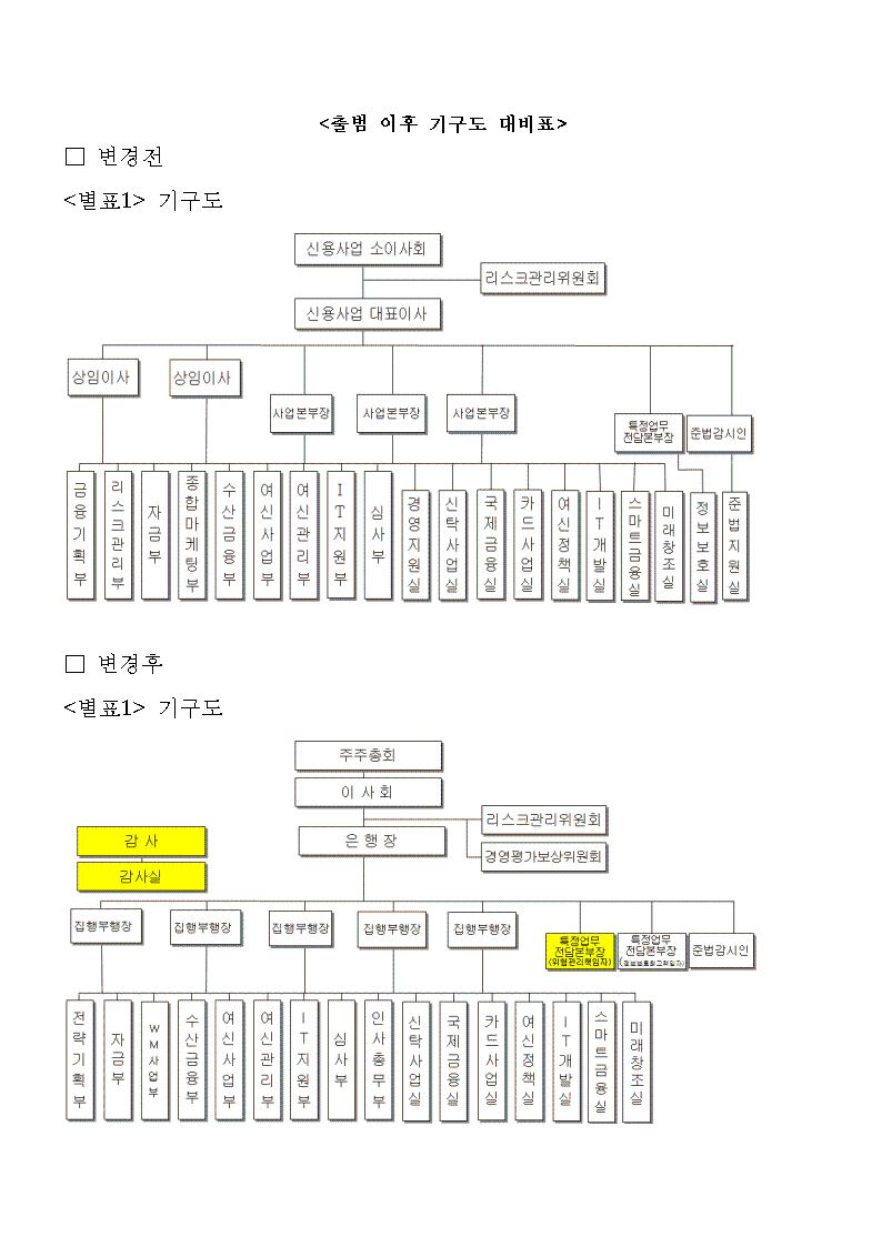 [아시아경제 강구귀 기자] Sh수협은행은 수협중앙회 분리 출범 이후 조직을 개편하고, 새로운 직제에 따라 임원을 선임했다고 5일 밝혔다. 먼저 ‘6본부 9부 10실 2단’ 체제에서 ‘5그룹 2본부 9부 7실 1단(감사실 별도)’으로 조직체계를 변경했다. 이에 따라 ▲기존 상임이사와 사업본부장 대체하는 집행부행장 ▲리스크관리본부 ▲기존 종합마케팅부와 방카펀드사업단을 통합한 ‘WM(자산관리)사업부’ ▲기존 관리형 광역본부를 폐지하고 수도권을 4개 권역으로 세분화한 마케팅형 영업본부 ▲감사실 등을 신설했다. 또 새로운 직제에 따라 감사, 부행장, 준법감시인, 위험관리책임자(CRO)를 선임했다.수협은행 관계자는 “기본적으로 본부조직과 임원 수의 증가는 최소화한 가운데 은행평균 생산성을 달성하기 위해 마케팅형 영업본부 신설 등의 조직운영 및 관리체계를 마련했다. WM(자산관리) 사업부를 신설하는 등 분야별 전문성을 강화하기 위한 방향으로 추진됐다”고 설명했다. 초대 감사로는 강명석 수협노량진수산 대표이사가 선임됐다. 전략기획 담당 부행장은 권재철 마케팅부행장이 맡게 되며, 신임 부행장에는 김철환 영업부장, 박석주 여의도증권타운지점장, 김학우 경인지역금융본부장, 신원선 IT개발실장이 임명되었다. 준법감시인에는 손재기 수산금융부장이, 위험관리책임자(CRO)에는 윤희춘 리스크관리부장이 선임됐다.강명석 감사는 경남 출신으로 수협중앙회 상임이사, 한국자산관리공사 상임이사, 수협노량진수산 대표이사 등을 거쳤다. 김철환 부행장은 경남 함안 출신으로 1990년 수협중앙회에 입회해 자금부장, 서울중앙지점장, 영업부장 등을 거쳤다. 박석주 부행장은 전남 장흥 출신으로 1982년 입회해 해양투자금융부장, 전남지역금융본부장, 여의도증권타운지점장 등을 거쳤다.김학우 부행장은 충북 괴산 출신으로 1982년 입회해 동대문지점장, 강남기업금융센터장, 경인지역금융본부장 등을 거쳤다. 신원선 부행장(CIO)은 서울 출신으로 1989년 입회해 고객지원부 전자금융팀장, IT지원부장, IT개발실장 등을 거쳤다.손재기 준법감시인은 경남 창녕 출신으로 1993년 입회해 심사부 심사2팀장, 감사실 일상감사팀장, 수산금융부장 등을 거쳤다. 윤희춘 위험관리책임자(CRO)는 경남 남해 출신으로 1993년 입회해 동탄지점장, 여신사업부장, 리스크관리부장 등을 거쳤다.이번에 선임된 감사의 임기는 3년으로 2019년 11월 30일까지다. 부행장 임기는 2018년 12월 1일까지, 준법감시인·위험관리책임자의 임기는 2018년 11월 30일까지다.강구귀 기자 nine@asiae.co.kr<ⓒ세계를 보는 창 경제를 보는 눈, 아시아경제(www.asiae.co.kr) 무단전재 배포금지>