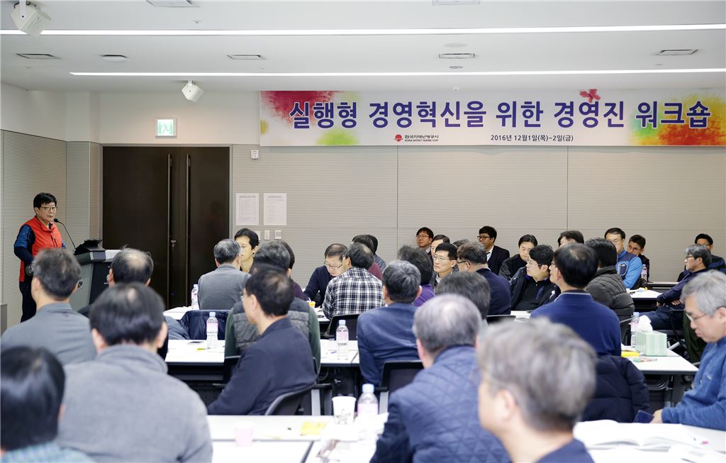김경원 한국지역난방공사 사장이 지난 1일 경영진 워크숍에서 경영혁신의 중요성을 강조하고 있다.