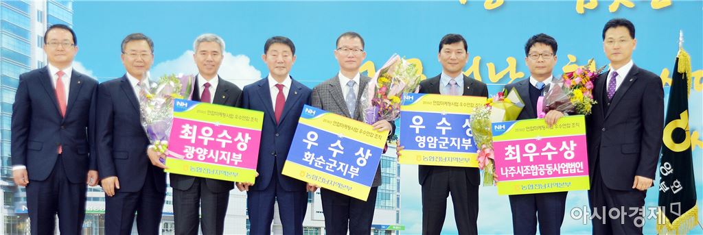[아시아경제 노해섭 기자]농협 전남지역본부(본부장 강남경)는 6일 지역본부 대강당에서 "2016년 전남 연합마케팅사업 우수연합조직”으로 농협광양시지부(지부장 임창택), 화순군지부(지부장 박남석), 영암군지부(지부장 김양권), 나주조합공동법인(대표 심재승)을 선정하고 시상했다.전남농협은 올 한해 원예농산물 판매액 3천억 달성을 목표로 전남 12개 시군연합조직과 5개 조합공동사업법인을 대상으로 평가하였고, 수상조직에는 각각 표창과 시상금을 수여했다.전남농협에 따르면 연합마케팅사업 판매액은 2015년도에 2,500억을 돌파하고, 2016년도에는 목표액 3,000억을 무난히 달성할 것으로 전망하고 있으며, 이 같은 성과는 튼튼한 공선출하조직 육성과 지역농협의적극적인 사업 참여, 시군연합조직의 통합마케팅 활동 강화 및 현장중심의 농산물 판매사업을 지속적으로 추진한 결과로 풀이된다. 강남경 본부장은“농협 연합사업의 목적은 생산농가의 조직화·규모화를 통해 시장교섭력을 제고하고 상품화 및 마케팅기능 강화로 농산물 판매사업을 활성화하는 것으로, 농협 중심의 통합마케팅조직을 기반으로 농산물 판매능력을 더욱 배가하여 농업인의 소득향상을 위해 더욱 노력하겠다“고 말했다.노해섭 기자 nogary@<ⓒ세계를 보는 창 경제를 보는 눈, 아시아경제(www.asiae.co.kr) 무단전재 배포금지>