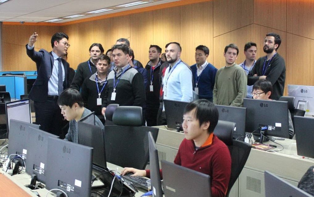 아르헨티나 ICT 담당 우수인재 연수단이 SK인포섹 통합보안관제센터에 방문해 설명을 듣고 있는 모습(제공=SK인포섹)