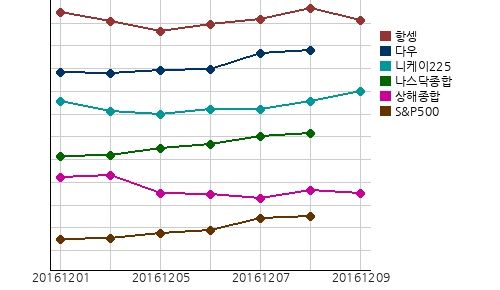 전일 뉴욕증권거래소에서 나스닥종합지수는 전일 대비 23.59포인트(0.44%) 오른 5417.36로 마감됐고, S&P500지수는 전일 대비 4.84포인트(0.22%) 오른 2246.19로 마감됐다. 또한 다우산업지수는 전일 대비 65.19포인트(0.33%) 오른 19614.81로 마감됐다.유럽증시는 이탈리아 FTSE MIB증시가 297.2포인트(1.64%) 상승하여 18427.86를 기록하는 등 독일 DAX30, 프랑스 CAC40, 러시아 RTS, 영국 FTSE100증시가 모두 상승세를 보였다.아시아증시는 현재 니케이225, 인도네시아 IDX종합, 대만가권증시가 상승세를 보이는 반면, 항셍, 홍콩H, 말레이시아 KLCI, 항셍차이나대기업 (R), 상해A, 상해종합, 상해B증시가 하향세를 보이고 있다.국내금시세