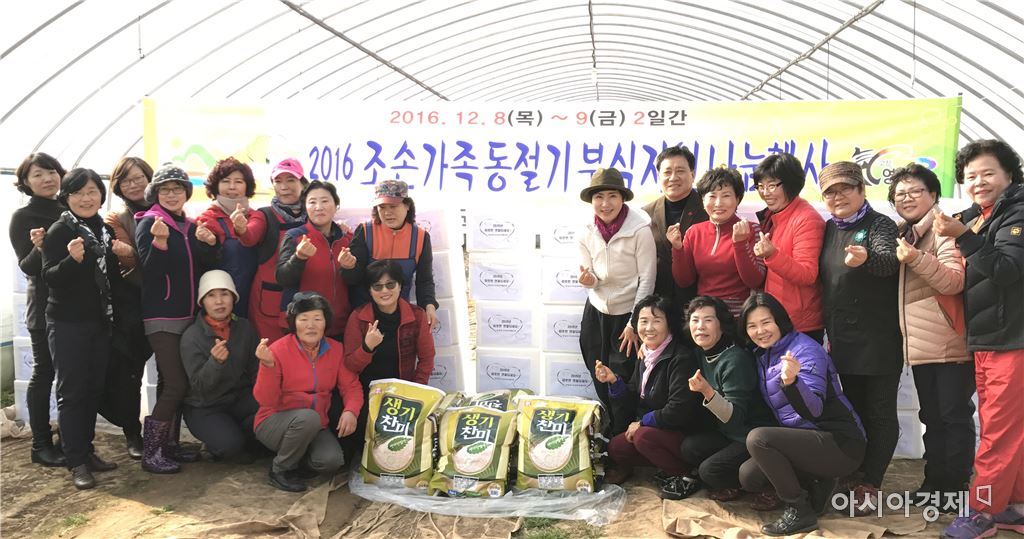 [아시아경제 노해섭 기자]영암군(군수 전동평)은 8일부터 9일까지 이틀간 따뜻한 겨울을 나기 위해 경제적으로 어려운 조손가정 97세대에게 쌀과 김치 등 부식을 전달했다. 이번 행사는 영암군여성단체협의회(회장 김갑임) 회원들이 참여해 2일간 정성으로 김장한 김치 10kg들이 97박스와 쌀 20kg 97포를 준비하고, 읍면 복지담당자들과 함께 저소득 조손가족에게 직접 방문해 전달하여 민관이 협력하는 자리를 마련했다. 군과 여성단체협의회는 조손가정을 위해 김장김치와 쌀 등 부식 나눔 행사를 매년 개최하고 있다. 임용기 여성가족과장은 “매년 봉사로 사회에 훈훈한 공동체 분위기를 만들고 있는 여성단체협의회 회원들에게 고맙고, 조손가정에서 쌀과 김치를 받고 기뻐할 모습을 생각하니 매우 기쁘고 따뜻한 겨울을 보냈으면 좋겠다”며 “앞으로도 소외된 군민들의 풍요로운 복지영암을 위해 지속적으로 노력하겠다”고 전했다.노해섭 기자 nogary@<ⓒ세계를 보는 창 경제를 보는 눈, 아시아경제(www.asiae.co.kr) 무단전재 배포금지>