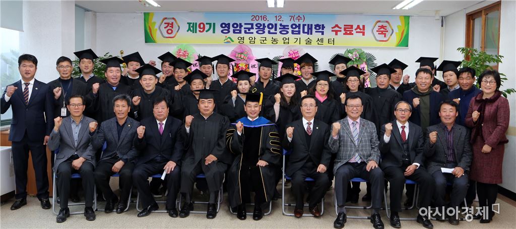 [아시아경제 노해섭 기자]영암군은 왕인농업대학(학장 영암군수 전동평) 제9기 수료식을 수료생과 가족, 유관기관 관계자 등 100여명이 참석한 가운데 지난 7일 농업기술센터에서 가졌다.이번 왕인농업대학은 영암군 대표 소득작목인 한우산업의 경쟁력을 높이고 고급육 생산을 통한 한우 사육농가 소득향상을 위해 한우 후계자과정을 1년 장기교육으로 운영해왔다.이날 수료식에는 김종수 수료생 대표가 농촌진흥청장상을 수상하였으며 왕인농업대학장상과 수료증 수여 등으로 진행되었다. 올해 학사운영은 3월부터 11월까지 매주 수요일 4시간씩 총 108시간으로 진행되어 교육생 31명 중 26명의 수료생을 배출했다. 군 농업기술센터 관계자는 “교육생들이 농장을 경영하는데 필요한 한우사육 기초적인 지식과 경영비용 절감방안, 고급육 생산을 위한 사육기술 등 다양한 이론교육과 함께 선진지 현장견학도 실시하여 교육생들로부터 큰 호응을 얻었다“ 고 말했다. 영암군은 내년에도 1년과정의 왕인농업대학을 운영하여 지역 대표품목의 최고 전문가를 양성할 계획이다.노해섭 기자 nogary@<ⓒ세계를 보는 창 경제를 보는 눈, 아시아경제(www.asiae.co.kr) 무단전재 배포금지>
