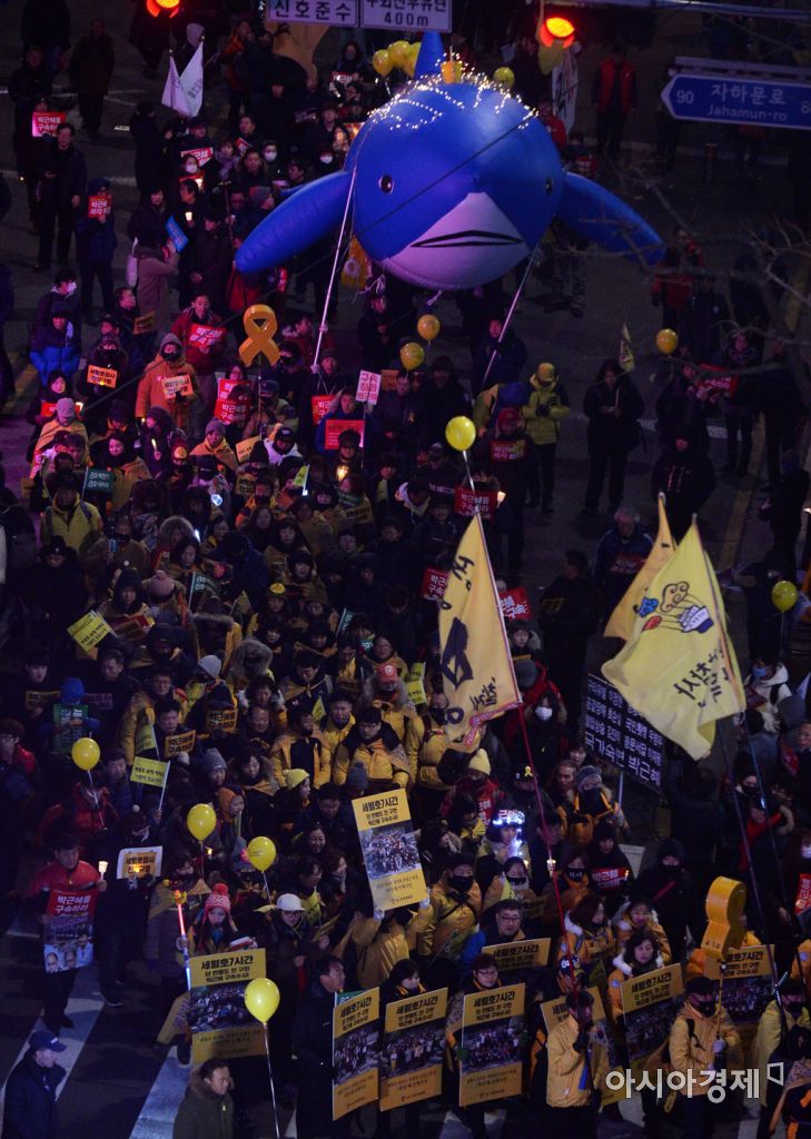 [아시아경제 문호남 인턴기자] 박근혜 대통령의 즉각 퇴진을 요구하는 7차 대규모 촛불 집회가 열린 10일 4·16 세월호참사 가족협의회를 비롯한 시민들이 서울 종로구 효자치안센터 앞에서 사전 행진 및 집회를 열고 있다.문호남 인턴기자 munonam@asiae.co.kr<ⓒ세계를 보는 창 경제를 보는 눈, 아시아경제(www.asiae.co.kr) 무단전재 배포금지>