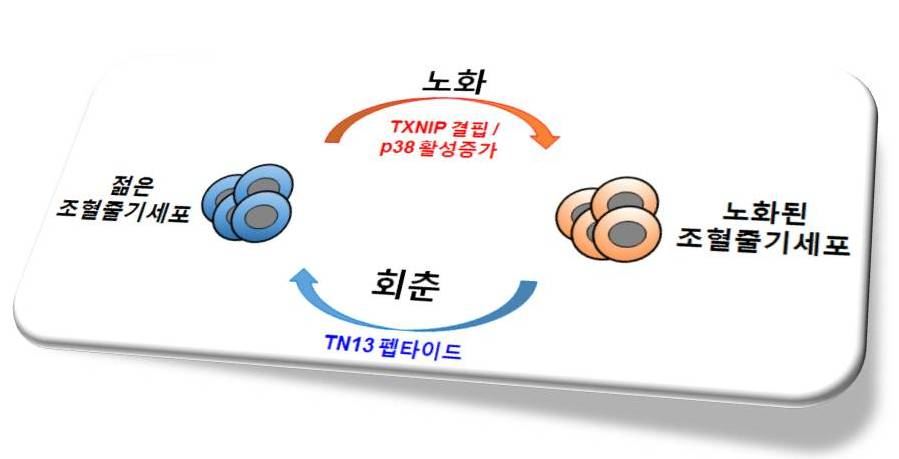 [아시아경제 정종오 기자] 국내 연구팀이 조혈줄기세포(혈액의 주요한 구성성분으로 잠재적으로 분화할 수 있는 세포)의 노화를 조절하는 유전자를 찾아냈다. 젊은 조혈줄기세포로 회춘시키는 기술을 개발했다. 면역 관련 질환의 예방과 치료, 면역세포 치료제 개발 등에 활용될 것으로 기대된다. 조혈줄기세포는 나이가 들고 스트레스를 받으면서 차츰 기능을 상실한다. 조혈줄기세포에 이상이 생길 경우 몸 전체의 혈액 세포에도 영향을 미쳐 면역저하, 빈혈, 암, 노화 등이 발생한다. 조혈줄기세포의 노화방지 기술, 노화억제 신약 개발과 관련해 다양한 연구가 시도되고 있다. 이런 가운데 연구팀이 노화를 조절하는 유전자를 발견하고 이를 통해 역 노화를 유도하는 기술 개발에 성공해 관심을 모으고 있다. 연구팀은 조혈줄기세포 내에서 활성산소 조절 단백질인 TXNIP가 스트레스에 의해 유도되는 p38 MAPK(활성산소의 생성과 노화를 유도하는 인산화 효소) 활성화에 관여하는 현상을 발견했다. TXNIP가 결핍된 조혈줄기세포가 정상 조혈줄기세포보다 활성산소가 증가하고 활성산소 조절에 중요한 p38 MAPK 역시 증가한다는 사실을 확인했다. 이를 바탕으로 p38 MAPK 활성을 억제하는 펩타이드를 개발해 조혈줄기세포의 역노화를 유도하는 데 성공했다. 연구팀은 생쥐의 골수에 노화된 조혈줄기세포의 펩타이드를 투여해 세포를 젊게 만드는 역노화 기능이 일어나는 것을 확인했다.이번 연구는 CiM융합연구단 최인표·정해용 박사팀이 수행했다. 연구결과는 네이처커뮤니케이션즈(Nature Communications) 온라인 판에 12월8일자(논문명 : Thioredoxin-interacting Protein Regulates Haematopoietic Stem Cell Ageing and Rejuvenation by Inhibiting p38 Kinase Activity)에 실렸다. CiM(Customized i-Medicine) 융합연구단은 국가과학기술연구회(이사장 이상천)가 지원하는 융합연구 사업이다. 줄기세포로부터 NK세포치료제를 개발하고 난치성 질환 극복과 신약 개발을 위해 2015년 출범했다. 최인표 박사는 "TXNIP 단백질 유래의 펩타이드를 이용해 노화된 조혈줄기세포의 역노화를 유도함으로써 줄기세포 기능을 회복시킬 수 있는 기술 개발에 성공했다"며 "역노화 기술을 바탕으로 건강한 조혈줄기세포 유지와 생성을 통한 면역질환 치료, 나아가 암이나 면역세포치료제 개발에 중요한 기반을 제공할 것으로 기대된다"고 말했다. 정종오 기자 ikokid@asiae.co.kr<ⓒ세계를 보는 창 경제를 보는 눈, 아시아경제(www.asiae.co.kr) 무단전재 배포금지>
