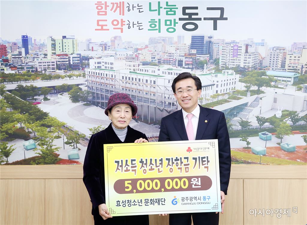 [아시아경제 노해섭 기자]효성청소년문화재단(이사장 김정옥)은 12일 동구청 접견실을 방문 동구관내 다문화가정, 시설, 저소득층 아이들에게 전달해 달라며 장학금 500만원을 기탁했다.사진제공=광주시 동구<ⓒ세계를 보는 창 경제를 보는 눈, 아시아경제(www.asiae.co.kr) 무단전재 배포금지>