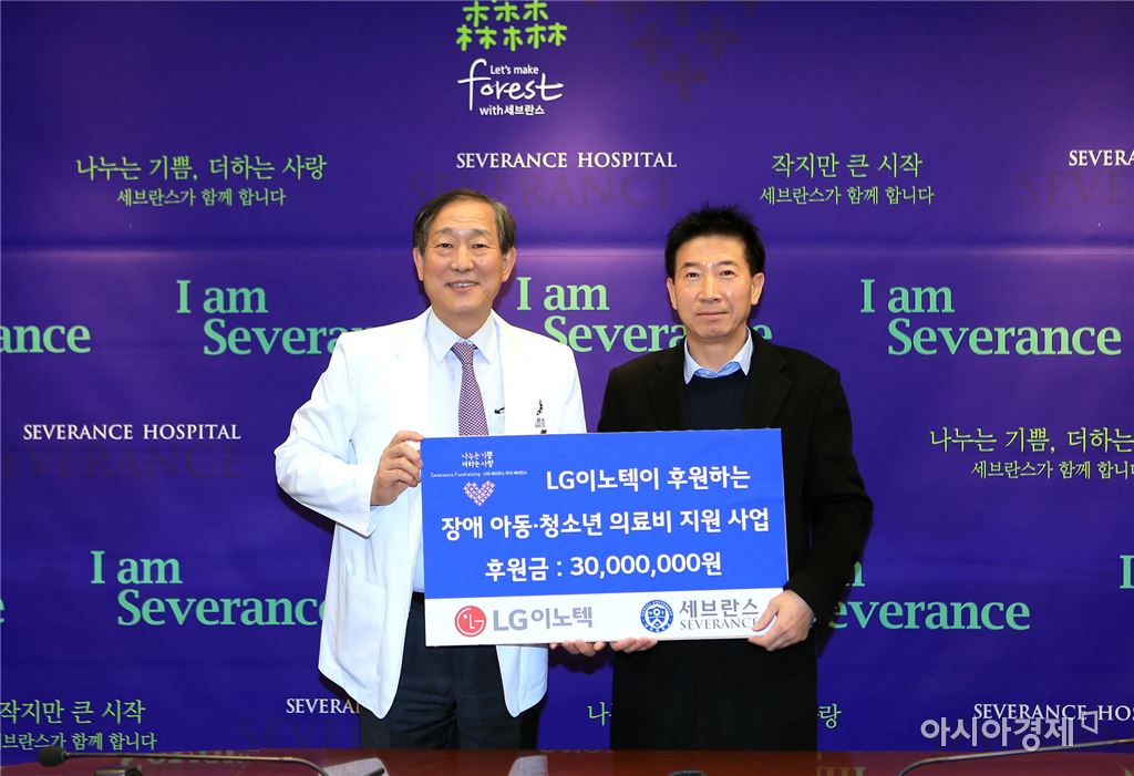 [아시아경제 원다라 기자]LG이노텍이 불우 장애 아동·청소년의 치료·재활비를 지원한다. LG이노텍은 지난 12일 서울 서대문구 연세대학교 세브란스 병원에서 연세의료원과 '장애 아동·청소년 의료비 지원 협약'을 체결했다고 13일 밝혔다. 이번 협약에 따라 LG이노텍은 내년부터 연간 3000만원씩 장애 아동·청소년의 진료· 수술·재활 치료에 소요되는 의료비를 지원하게 된다. 연세의료원은 진료와 수술, 재활 치료를 담당한다. LG이노텍 관계자는 "그동안 어린이·청소년들의 교육·생활을 지원해왔다"며 "보다 근본적으로 어린이·청소년들에 도움을 줄 수 있는 치료·재활을 지원하고자 이번 협약을 체결했다"고 말했다. LG이노텍은 저소득층 어린이들의 학습을 도와주는 ‘방과 후 아카데미’, 학생들에게 IT 기술 체험 기회를 제공하는 ‘해피 IT 캠프’ 등을 운영해왔다. 이날 협약식에는 김동의 LG이노텍 노조위원장, 송상호 LG이노텍 인사담당, 방정욱 LG이노텍 사원대표, 윤도흠 연세의료원장 등이 참석했다. 김 노조위원장은 "어려움을 겪는 장애 어린이들이 자립할 수 있도록 실질적인 지원을 해나갈 것"이라며 "작지만 소중한 뜻을 모았다"고 말했다. 원다라 기자 supermoon@asiae.co.kr<ⓒ세계를 보는 창 경제를 보는 눈, 아시아경제(www.asiae.co.kr) 무단전재 배포금지>