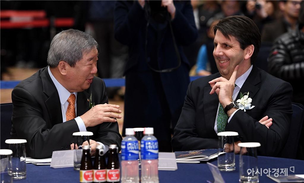 [아시아경제 김현민 기자]프로야구 2016 골든글러브 시상식이 13일 서울 서초구 더케이호텔에서 열렸다. 마크 리퍼트 주한 미국대사(오른쪽)가 구본능 KBO총재와 이야기를 나누고 있다. 김현민 기자 kimhyun81@asiae.co.kr<ⓒ세계를 보는 창 경제를 보는 눈, 아시아경제(www.asiae.co.kr) 무단전재 배포금지>