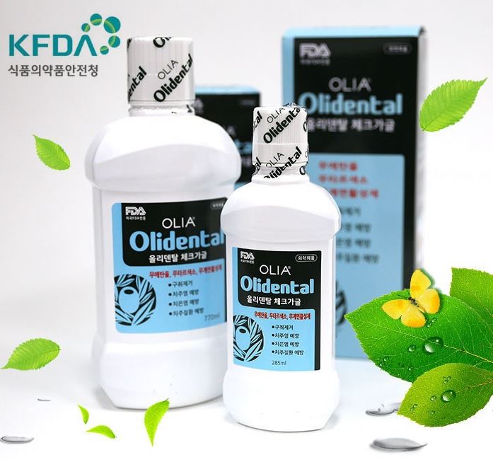 60년간 국민 건강과 복지에 기여한 아주약품의 기술제휴로 만들어낸 올리덴탈 체크가글은 가글 형태로 되어 있어 이와 잇몸 사이사이까지 구석구석 침투해서 이물질을 빼내주고 입속 세균을 99.9% 없애주는 놀라운 살균은 물론 불소 막을 형성하여 유해세균으로부터 치아 표면을 보호해주고 충치를 예방하는 효과까지 있다.사용 방법도 간편하다. 작은 컵으로 입안에 머금고 30초 정도 가글 후 뱉어 내면 이물질을 육안으로 확인할 수 있는데, 이 이물질속에 입 냄새와 치주 질환의 원인인 세균이 포함되어 있다. 즉, 이물질이 많을수록 치주질환에 직접적인 영향을 주는 유해세균이 많이 서식한 것이라 보면 된다. 하루 1번 사용으로 치주 질환 예방은 물론, 입 냄새로부터 해방될 수 있다.올리덴탈 사용전, 후