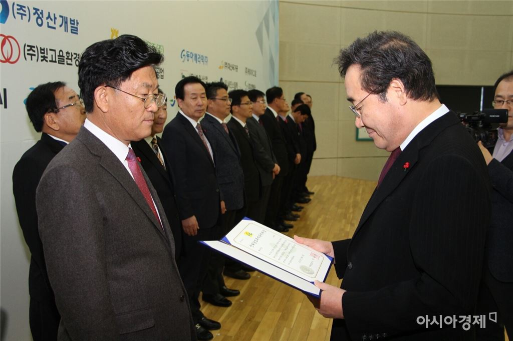 강인규 나주시장이 이낙연 전남지사로부터 시군 투자유치 평가 최우수상을 수상하고 있다. 사진=나주시