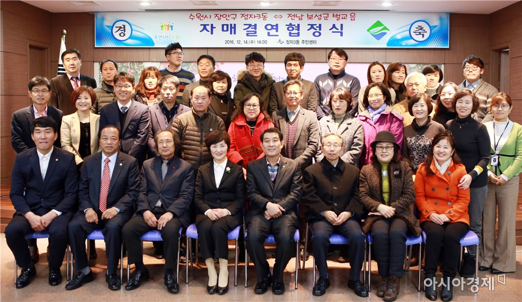 "정 나누며, 농·수산물 직거래 등 상생발전 협력키로 " [아시아경제 노해섭 기자]보성군 벌교읍 행정복지센터는 지난 14일 수원시 장안구 정자3동 주민센터와 도농 상생발전을 위한 자매결연을 맺고 상호 발전을 위해 노력하기로 했다. 이날 정자3동 주민센터회의실에서 열린 자매결연 협약식에는 벌교읍장과 이장단협의회장, 정자3동 동장과 주민자치위원장, 생산단체 대표, 관계 공무원 등이 참석했다. 이번 협약은 행정, 경제분야, 문화·예술 체육분야, 복지·환경 분야 등 다양한 분야에 걸쳐 상생과 협력으로 서로가 발전해 나가는 도시와 농촌 간 교류의 모범사례가 될 것으로 기대하고 있다. 정자3동 조명희 동장은 “천혜의 아름다운 자연경관과 벌교꼬막 등 친환경 농수산물이 많이 생산되는 벌교읍과 자매결연을 맺어 뜻깊게 생각하며, 우리 동민을 대표해서 감사하다”고 말했다. 벌교읍 행정복지센터 박인숙 읍장은 “정자3동과 결연을 통해 양 지역발전과 주민화합에 큰 도움이 될 것이며, 이번 행사가 단순한 일회성 행사로 그치지 않고 지속적인 교류협력을 위해 농수산물 직거래 장터 개설 등 민간차원은 물론 행정적 지원에도 최선을 다하겠다”고 말했다.노해섭 기자 nogary@<ⓒ세계를 보는 창 경제를 보는 눈, 아시아경제(www.asiae.co.kr) 무단전재 배포금지>
