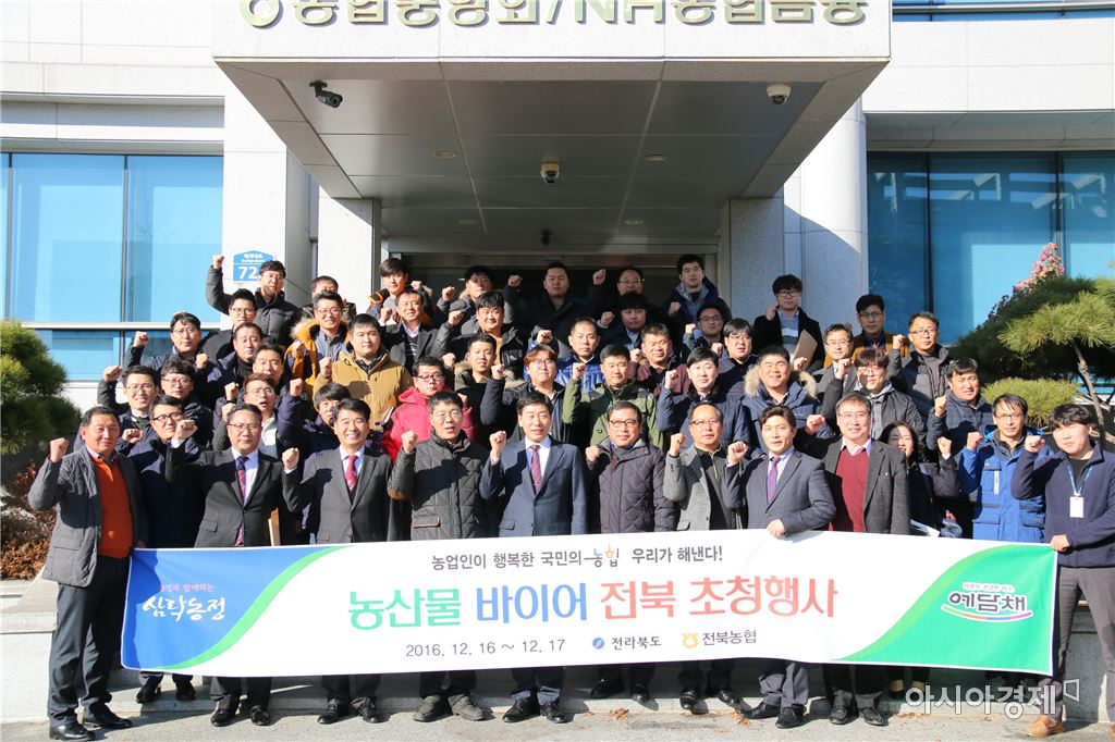 "농산물 바이어 전라북도 초청행사 개최"[아시아경제 김태인 기자]전라북도와 전북농협(본부장 강태호)은 16~17일 이틀동안 농협경제지주 청과사업국, 광주농산물물류센터, 밀양농산물물류센터, 대외마케팅단, 수도권 주요 유통센터(양재, 창동, 수원, 고양), 구리공판장, 서울청과 등 농산물 바이어 40여명을 초청해 “농산물 바이어 전북 초청행사”개최 했다.전북도와 전북농협은 전북 주요 농산물의 판로확대를 위하여 지난 3월부터 매월 실시한 통합판촉행사의 성공적인 개최를 지원해주었고, 올 한 해 동안 각자의 위치에서 전북 농산물 판매 활성화를 물신양면으로 지원해 준 바이어들에게 그간의 노고에 감사하고 향후에도 전북 농산물의 판매확대에 기여해 줄 것을 요청하는 의미에서 금차 행사를 진행하게 되었다.특히, 농협청과사업국 양시춘 부장과 광주농산물물류센터 김훈 센터장이 현장에서 직접 전북 농산물을 다루고 있는 바이어들과 전북을 직접 방문하여 전북 농산물의 처리과정도 현장에서 확인해 보고 전북 농산물에 대한 신뢰도 및 호감도 상승 기회가 되었다.또한 전북 농산물 소개 및 홍보 뿐 아니라, 전북도와 전북농협이 협력하여 개장한 전북 6차산업 안테나 숍, 공덕농협 고구마 가공공장, 전국적인 명성을 얻은 예담채 양파를 선별하는 변산농협 APC, 농협 단위 6차산업을 선도하는 동김제농협 로컬푸드 직매장 등을 견학하는 다채로운 프로그램을 진행하여 큰 호응을 얻었으며, 이를 계기로 향후 전북 농산물 판매확대에도 기여할 것으로 예상된다.이번 행사에 참여한 청과사업국 양시춘 부장은 “과중한 업무를 잠시 내려놓고 자연경관이 뛰어난 아름다운 전북을 경험하고 전북 농산물에 대해 다시 한번 되돌아 보는 시간이 되어 좋은 시간이 되었고, 한편으로는 전북 농산물 판매에 대한 큰 책임감도 느껴졌다”고 말했다.강태호 전북농협 본부장은 “전북에서 생산되는 농산물은 바이어와 소비자 모두가 신뢰할 수 있는 고품질 안전 농산물로 자리매김하기 위하여 지속적으로 혁신해 나갈 것이므로 전북 농산물 판매 확대에 더욱 더 협조해 줄 것”을 당부했다.김태인 기자 <ⓒ세계를 보는 창 경제를 보는 눈, 아시아경제(www.asiae.co.kr) 무단전재 배포금지>