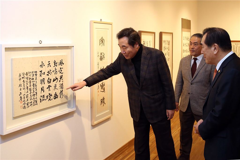 [아시아경제 노해섭 기자]이낙연 전남지사가 18일 고흥 남포미술관을 방문, 소록도 해록예술회와 순천 원미회의 미술작품 교류전을 관람하고 있다. 소록도 한센인으로 구성된 해록예술회와 지역 미술인으로 구성된 원미회가 ‘경계를 넘어 마주보다’를 주제로 31일까지 전시한다. 강선봉 해록예술회장과 전시작가, 곽형수 남포미술관장, 박금래 도의원이 함께 돌아봤다. 사진제공=전남도<ⓒ세계를 보는 창 경제를 보는 눈, 아시아경제(www.asiae.co.kr) 무단전재 배포금지>