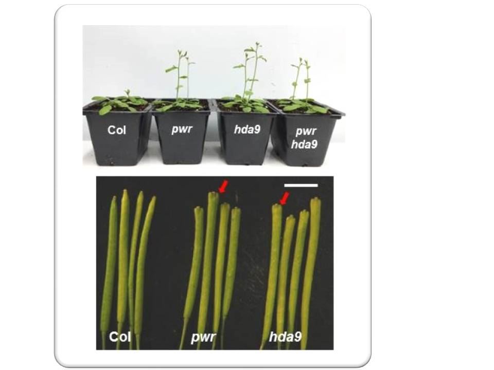 ▲유전자 발현 억제를 하는 HDA9와 PWR 단백질 기능이 제대로 작용하지 않으면 꽃이 일찍 피고 건강하지 못한 열매가 달렸다. [사진제공=IBS]