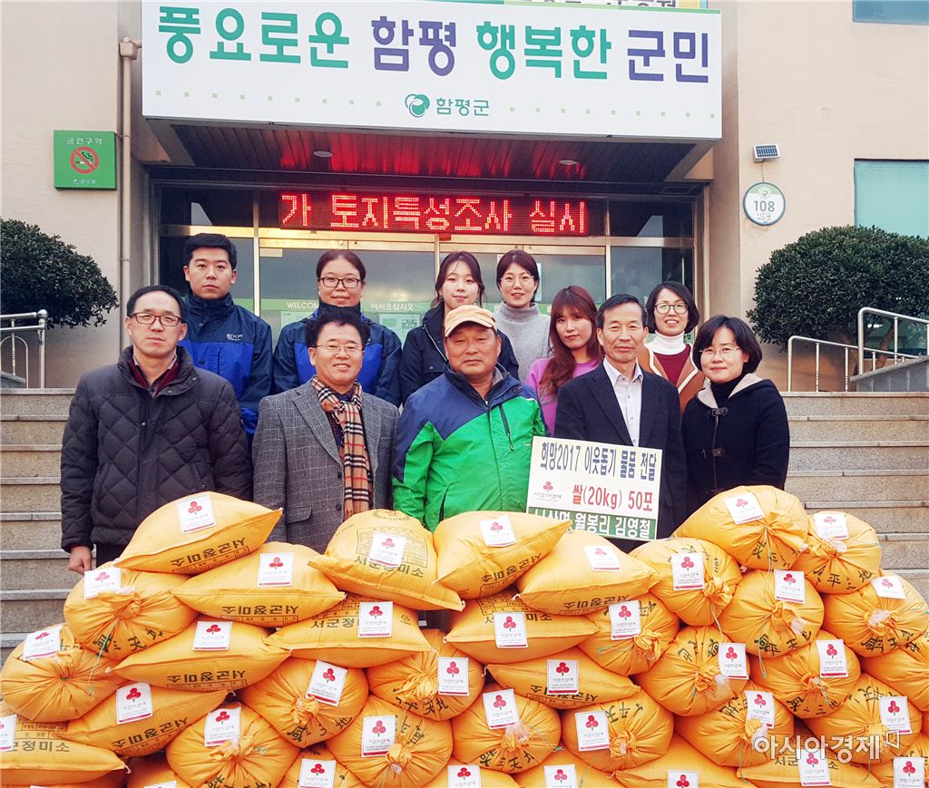 [아시아경제 노해섭 기자]함평군 나산면 월봉리 김영철(56)씨가 지난 16일 관내 경로당과 어려운 이웃에게 전달해 달라고 직접 재배한 쌀 50포대를 나산면에 기탁했다. 매년 소외계층을 위해 쌀을 기부해왔던 김 씨는 “매년 힘겨운 겨울을 나는 어르신들과 불우이웃을 위해 조금이나마 도움이 됐으면 하는 마음에 쌀을 기탁했다”고 말했다. 나기열 나산면장은 “지역 주민을 생각하는 마음에 감사드리며, 기부한 쌀은 어려운 이웃을 위해 소중하게 사용하겠다”고 전했다.노해섭 기자 nogary@ <ⓒ세계를 보는 창 경제를 보는 눈, 아시아경제(www.asiae.co.kr) 무단전재 배포금지>