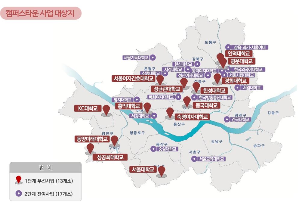 [아시아경제 조은임 기자]서울시가 대학과 지역사회가 상생하는 '캠퍼스타운' 조성사업을 본격적으로 추진한다. 시는 13개 대학을 1단계 사업 대상지로 첫 선정 발표했다. 이들 대학에는 3년간 최대 6억~30억원이 투입된다. 선정된 대학은 ▲경희대 ▲광운대 ▲동국대 ▲동양미래대 ▲서울대 ▲서울여자간호대 ▲성공회대 ▲성균관대 ▲숙명여대 ▲인덕대 ▲케이씨대 ▲한성대 ▲홍익대 등이다'캠퍼스타운'은 대학의 인적·물적·지적 자원과 공공의 지원을 결합해 서울의 52개 대학가를 청년 일자리 창출과 지역경제 활성화의 거점으로 바꾸는 신개념 도시재생모델이다. 시는 지난 6월 사업계획을 발표하고 2025년까지 마중물 사업 예산 1520억원을 투입하기로 했다. 캠퍼스타운은 '프로그램형'과 '지역창조형'(종합형, 총 10개소, 개소당 최대 100억 원) 두 가지로 유형으로 추진되는데, 이번에 발표한 13곳은 프로그램형 1단계 사업 대상지다. '프로그램형 사업'은 단위사업형으로, 총 50개소를 대상으로 진행되며 각각 최대 6~30억원이 투입된다. 청년창업 컨설팅, 지역공동체 강화, 보행환경 개선 같이 대학과 지역에 필요한 개별사업 단위로 추진된다. 지역사회를 위한 대학의 자발적인 참여가 핵심이다. 대학을 중심으로 자치구와 협업해 계획수립부터 시행까지 주도하고 시가 지원하는 방식으로 진행된다.시는 약 두 달에 걸쳐 총 30개 대학·자치구 공동제안사업을 두고 제안자 상호평가, 전문가 사전검토, 전문가 심사 등 3단계로 심사와 논의를 거쳐 최종선정했다. 특히 대학의 추진의지와 제안의 실현성에 무게를 두고 심사했다. 이번에 제안한 내용을 살펴보면 ▲대학이 소유하고 있는 학교 밖 공간에 예비창업자에게 교육, 장비대여, 시제품 제작, 홍보·판매 등을 종합지원하는 공간 조성 ▲대학의 디자인학과에서 지역상점의 브랜딩, 포장 등 디자인 지원 ▲어르신 건강관리, 다문화 청소년 자립지원 등 다양한 사업모델이 제시됐다.대상지들은 시의 예산지원, 대학이 보유한 공간과 인적·물적 자원을 활용해 대학과 지역에 필요한 프로젝트를 발굴·추진하게 된다. 예산 지원은 사업내용에 따라 연 2억~10억원 범위 내에서 차등 적용된다. 시는 1단계 13개소를 중심으로 성공모델을 다양하게 만들어 서울 소재 전체 대학으로 확산시킨다는 계획이다. 또, 나머지 17개소에 대해서는 컨설팅단을 구성·운영하는 등 지속적인 관리체계를 마련해 2018년부터 2단계 사업으로 추진할 예정이다. 1단계 사업지는 내년 중 대학·자치구와 사업제안 분석, 협의 조정 단계를 거쳐 실행계획을 확정하고 본격적인 사업에 들어간다. 한편 '지역창조형' 캠퍼스타운은 1(창업육성)+4(주거안정화·문화특성화·상권활성화·지역협력) 핵심목표를 적용해 도시재생활성화사업으로 추진된다. 시는 내년 3개소 선정을 시작으로 2025년까지 10개소 이상을 추진한다는 계획이다. 시는 52개 대학 가운데 협력의지가 매우 높은 고려대를 중심으로 한 '안암동 창업문화 캠퍼스타운'을 우선사업 대상지로 선정한 바 있다.김학진 시 도시계획국장은 "캠퍼스타운 소규모 프로그램 사업을 통해 대학과 지역의 상생발전을 유도해 캠퍼스타운 사업의 성공적 기틀을 마련하고 이를 타 대학으로 확산시킬 계획"이라고 말했다. 조은임 기자 goodnim@asiae.co.kr<ⓒ세계를 보는 창 경제를 보는 눈, 아시아경제(www.asiae.co.kr) 무단전재 배포금지>