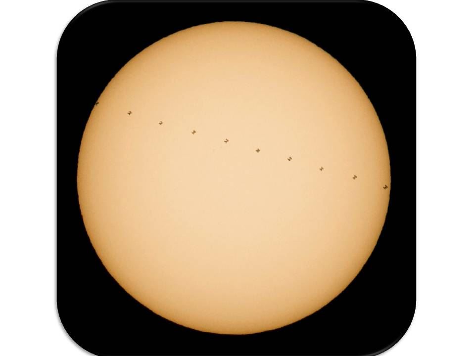 [아시아경제 정종오 기자] 붉은 태양면 지나작은 점으로 날아우주 공간의 신비<hr/>국제우주정거장(ISS)이 태양 앞을 지나는 장면이 포착됐다. 이른바 국제우주정거장의 태양면 통과 현상이다. 아주 작은 점이 태양 앞에서 움직이고 있는 것처럼 보인다. 연속적으로 사진을 합성해 보면 왼쪽 위에서 오른쪽 아래로 국제우주정거장의 모습을 확인할 수 있다. 국제우주정거장에는 현재 6명의 우주비행사가 머물고 있다. 태양 앞을 지날 때 국제우주정거장의 속도는 초속 약 8㎞에 이르렀다. 이번 사진은 지난 17일 미국 캘리포니아 뉴버리파크에서 찍은 것이다. 국제우주정거장에는 유럽우주기구 소속 토마스 페스케를 비롯해 미국 항공우주국(NASA) 우주비행사 2명, 러시아 우주비행사 3명 등 총 여섯 명이 타고 있다. 정종오 기자 ikokid@asiae.co.kr<ⓒ세계를 보는 창 경제를 보는 눈, 아시아경제(www.asiae.co.kr) 무단전재 배포금지>