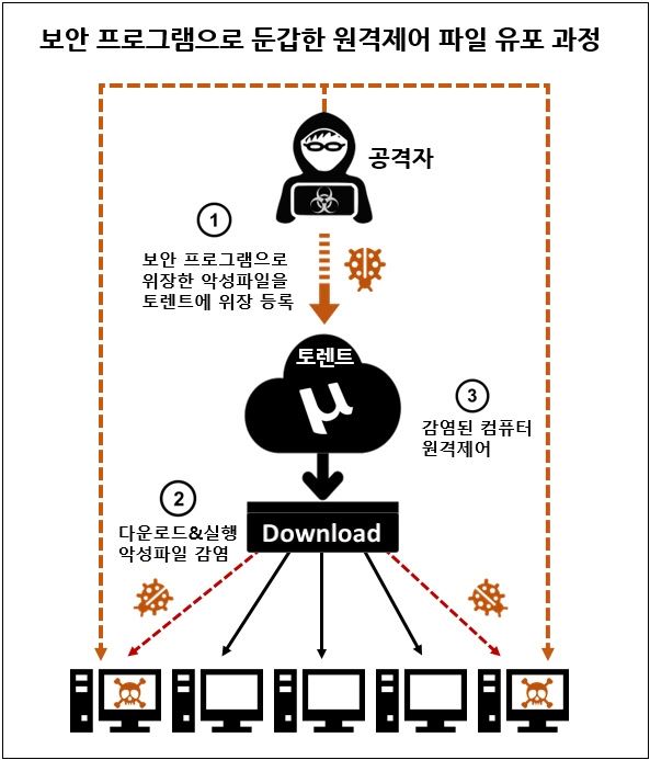 보안프로그램으로 위장한 악성파일 토렌트 유포 흐름도(제공=이스트소프트)