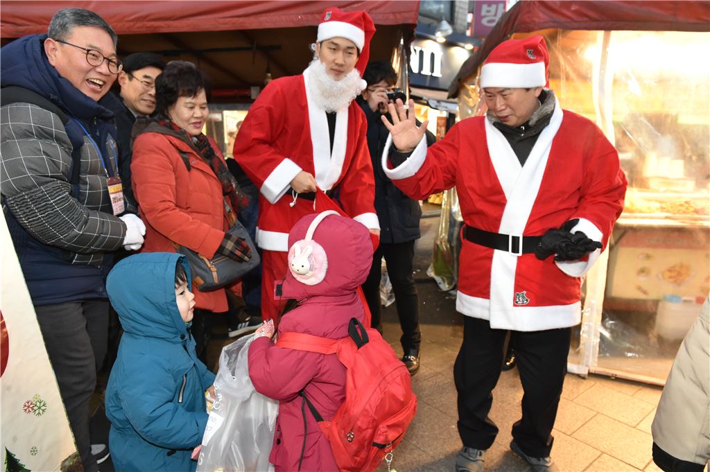 [아시아경제 박종일 기자] 나진구 중랑구청장이 23일 중랑동부시장에서 진행한 ‘크리스마스 축제’에 참석, 깜짝이벤트로 산타복장을 한 후 시장을 찾은 아이들과 정답게 인사를 나누었다. 이번 행사는 크리스마스와 겨울방학을 맞아 문화관광형시장인 중랑동부시장에서 다양한 체험 프로그램 및 즐거운 공연을 통해 지역 내 아이들과 주민들에게 따뜻하고 행복한 추억을 선물하기 위해 마련됐다.박종일 기자 dream@asiae.co.kr<ⓒ세계를 보는 창 경제를 보는 눈, 아시아경제(www.asiae.co.kr) 무단전재 배포금지>