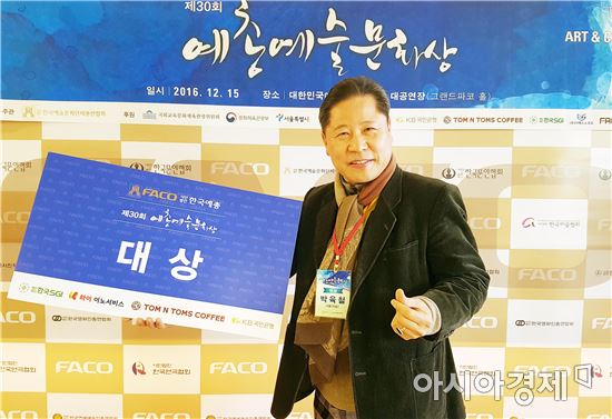 [아시아경제 노해섭 기자]프랑스 국제앙드레말로협회 및 (C)ADAGP Global 저작권자이며 순천연향초등학교에 재직중인 만유 박육철 수석교사(한국서각협회 자문위원, 광양예총 부회장)가 지난 12월 15일 ‘제30회 한국예총예술문화상 대상’을 수상해 화제가 되고 있다. 이번 행사는 한국예술단체총연합회가 주최?주관하고, 국회교육문화체육관광위원회, 문화체육관광부, 서울특별시의 후원으로 이뤄졌으며, 제26대 한국예총 회장을 역임한 임농 하철경 회장이 집행부의 재신임을 얻어 제27대 한국예총 회장으로 취임하는 행사와 같이 진행됐다. 만유 박육철 수석교사의 대상 수상 배경은 1993년 POSCO 교육재단 산하 광양제철초등학교에 부임이후 순천연향초등학교에 재직하고 있는 현재까지 서각의 불모지인 전라남도에 현대조형서각의 원조로서 뿌리를 내리기까지 문하생 육성과 21회 개인전 및 그룹전 등으로 왕성하게 활동했다. 또 학생, 학부모, 교사 서각동아리의 재능기부와 한국미술협회 이사로 활동하며 문화예술단체들과 협력 증진을 도모한 공이 크므로 한국예총 서울시연합회 미술분야의 공로자로 추천돼 수상자로 선정됐다. 서울 대한민국예술인센터에서 열린 시상식은 임농 하철경(한국예총 회장), 축하 내빈으로 정세균(국회의장), 박지원(국민의당 원내대표), 유성엽(국회 교육문화체육관광위원회 위원장), 정인화(국민의당, 광양·구례·곡성지역구)국회의원을 비롯해 정관계인사 축하객 400여명이 참석했다. 또 대한민국 예총산하 10개 단체(박옥초 국악협회 대상 수상자 외 9개 단체)와 전국 시?도에서 뽑힌 32명의 대상 수상자와 한국예총 문화예술 발전에 공이 큰 정성태(한국예총 자문위원) 외 15명에 대한 특별공로상 시상이 있었다. 축하공연은 강은영 진도북춤, 성악가 김철웅, 가수 유지나·소명, 가림다무용단, 전통연희당 잔치마당 등 율동과 선율이 하모니를 이루는 등 시종일관 축제 분위기였다. 한국예총 서울시연합회 미술분야 (전공:서각) 공로자로 대상을 수상한 만유 박육철 수석교사는 2016년을 빛낼 ‘도전한국인’과 도전한국인 ‘신지식인’에 선정된 바 있으며, 2014년 프랑스 국제앙드레말로협회 Global 서각 명장과 (C)ADAGP 저작권자이다. 만유 박육철 수석교사는 수상 소감에서 “영광스런 상을 준 것은 열정을 다하는 서각 예술인, 교육자로서 사명감을 다하라는 격려의 상으로 생각한다”며 “창작정신을 다하는 작가로 겸손한 마음을 가진 예술계의 CEO가 되겠다”고 말했다. 한편, 1987년 제정된 예총예술문화상은 국민들의 문화 향유권 확대에 기여한 예술인들의 공적을 평가하는 상이다.노해섭 기자 nogary@<ⓒ세계를 보는 창 경제를 보는 눈, 아시아경제(www.asiae.co.kr) 무단전재 배포금지>