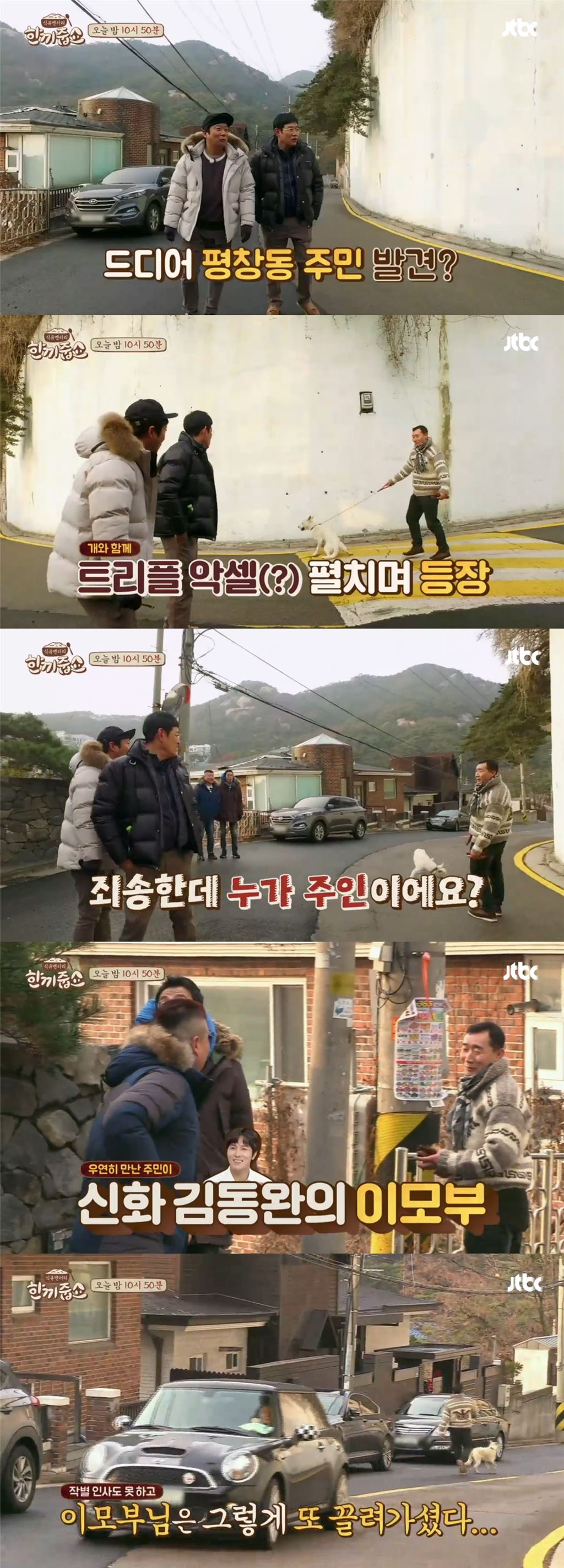 우연히 출연진들과 마주친 그룹 신화의 멤버 김동완의 이모부/사진=JTBC '한끼줍쇼' 캡처