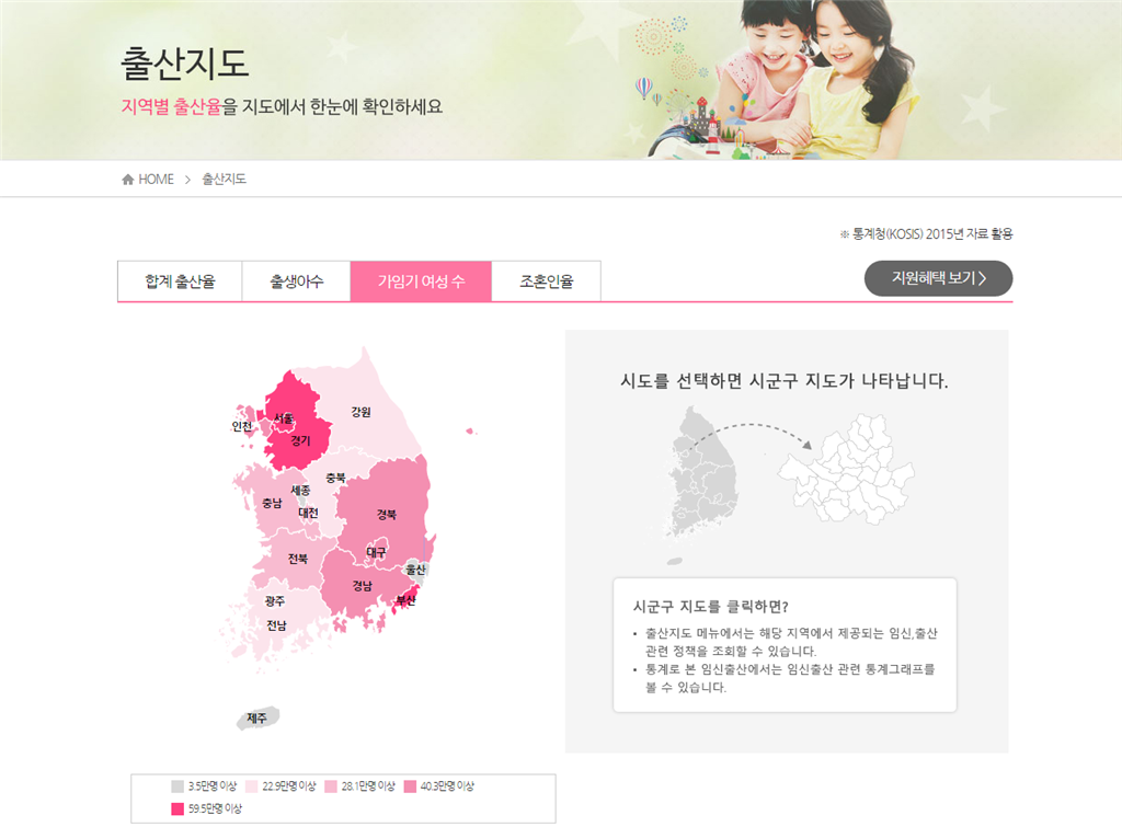 행정자치부가 공개한 '대한민국 출산지도'/사진='대한민국 출산지도' 홈페이지