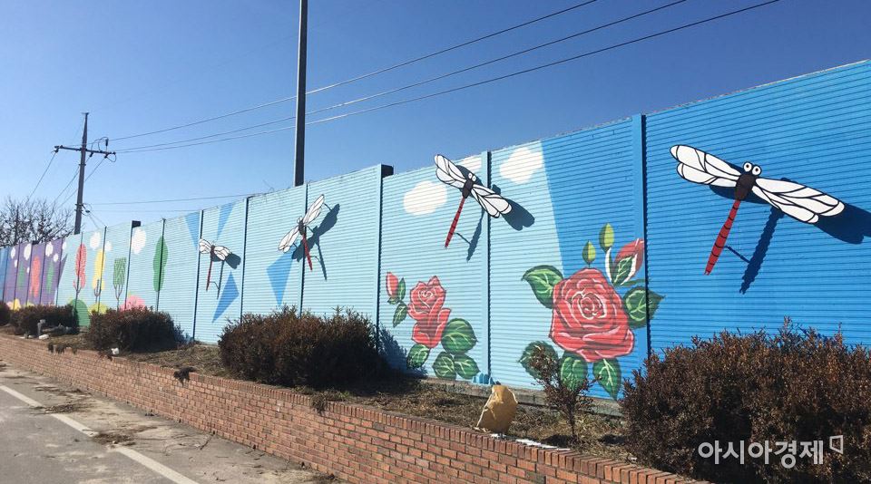 "기차, 장미 등 곡성 상징 그림으로‘자연속의 가족마을’홍보" [아시아경제 노해섭 기자]곡성의 관문에서 장미와 기차가 여러분을 반긴다! 곡성군(군수 유근기)은 군민과 지역을 찾은 향우·관광객들에게 다양한 볼거리를 제공하고 관광곡성 이미지 제고를 위해 ‘테마가 있는 벽화거리’를 조성해 왔다. 군 관계자에 따르면 이번에 조성한 벽화거리는 곡성 진입도로(도림사 인근 좌우 각 100m) 일부 구간으로 낡은 방음벽의 넝쿨과 흙을 제거하고 곡성을 상징하는 조형물과 브랜드를 입체적으로 제작했다고 전했다.